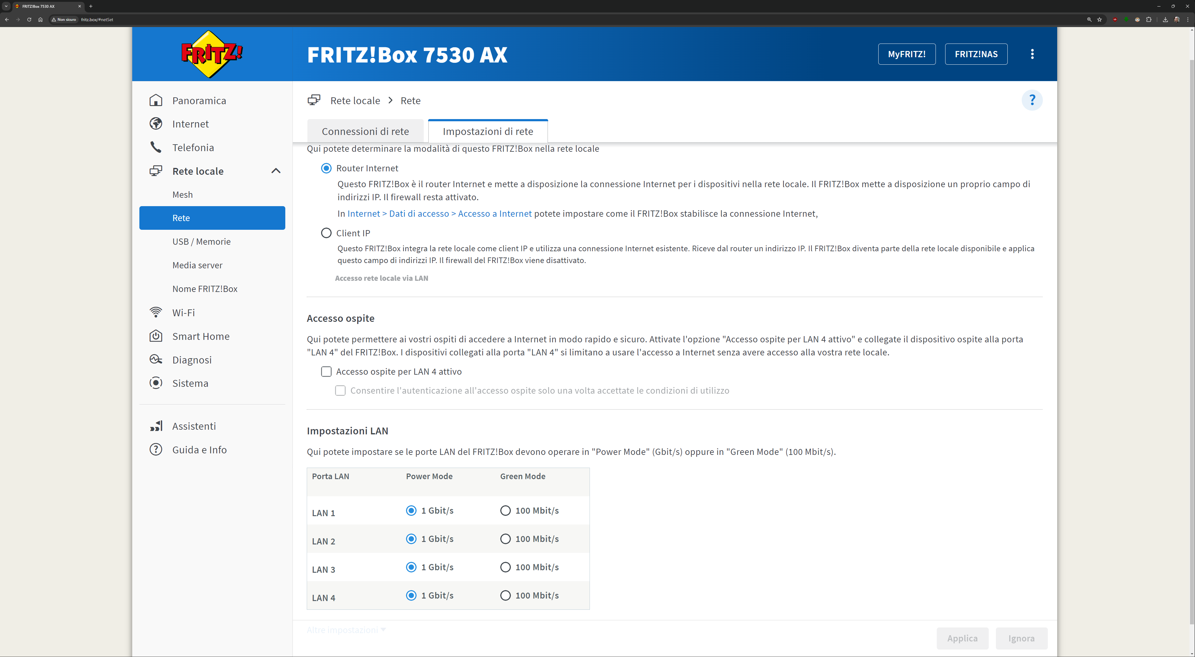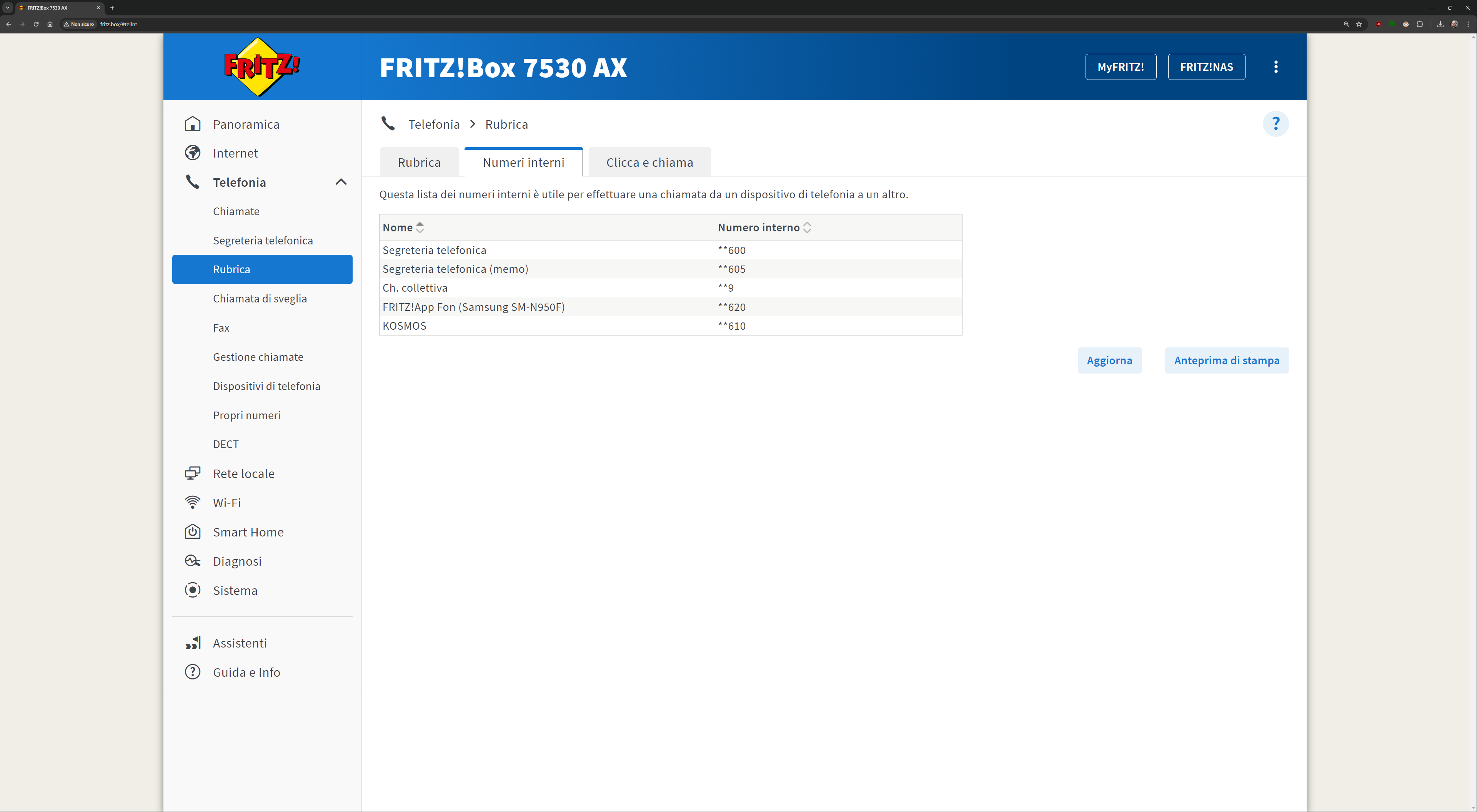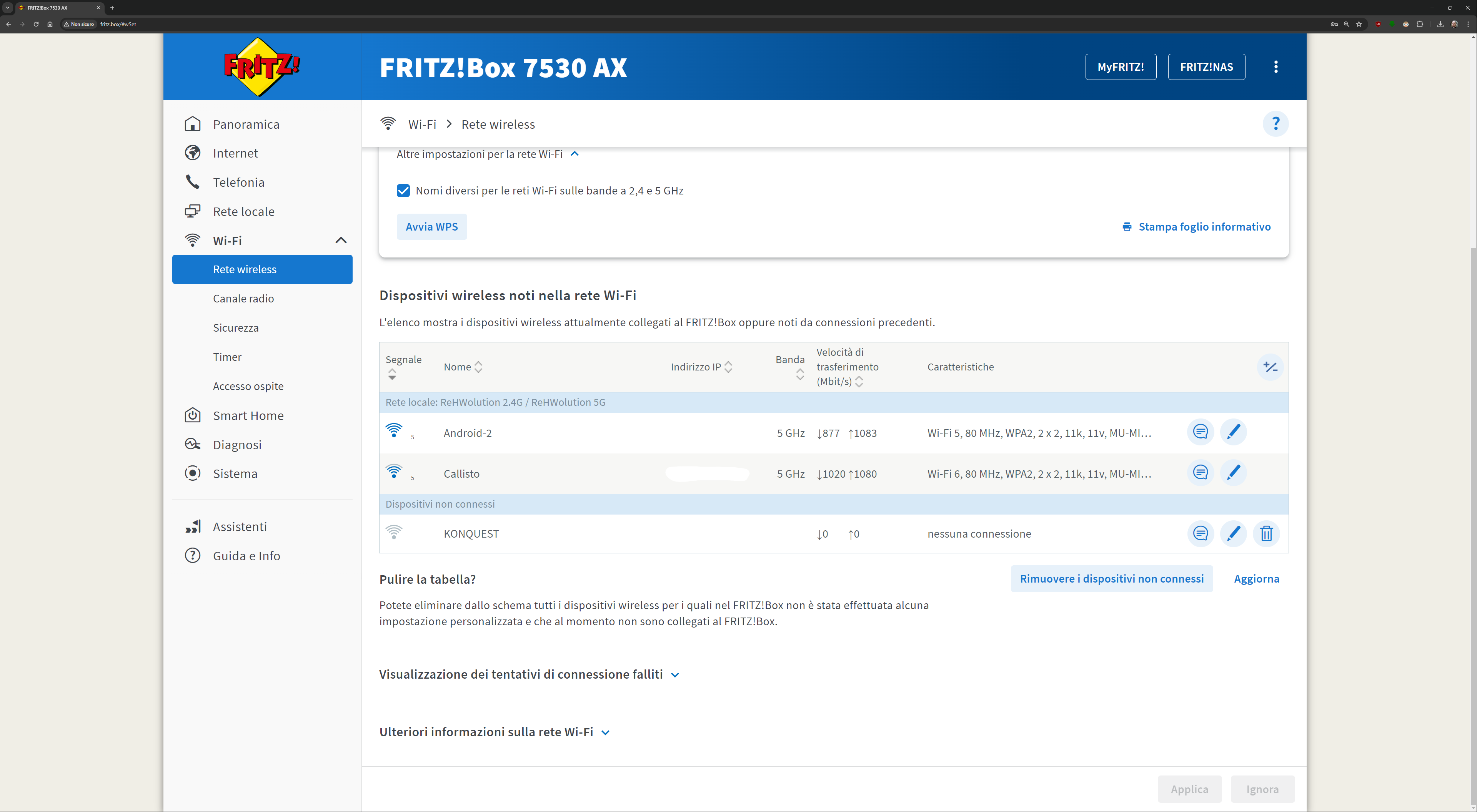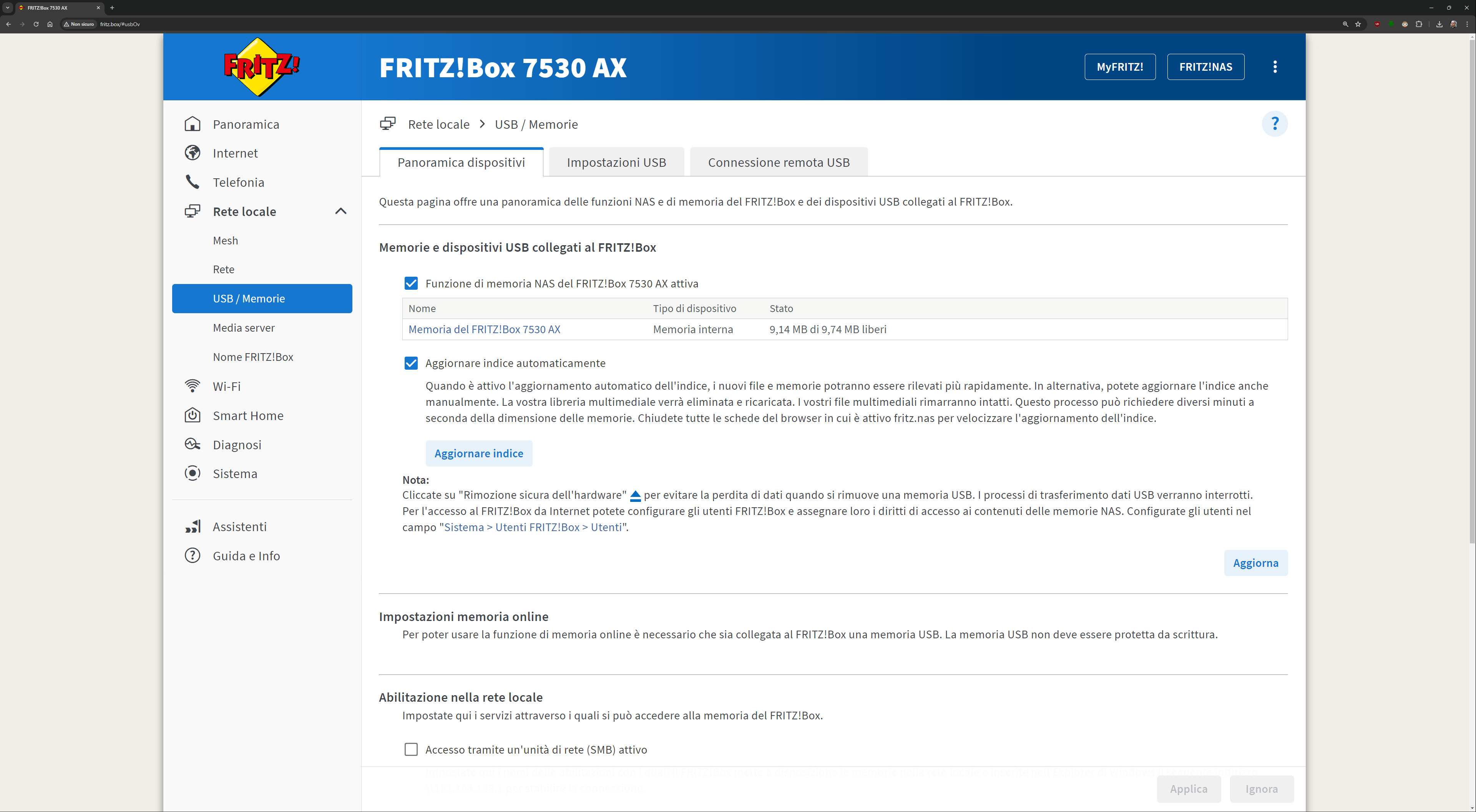 L’interfaccia presente all’indirizzo fritz.box una volta collegati al FRITZ!Box è davvero esaustiva. Ecco quindi una sfilza di screenshot dell’interfaccia. Molti indirizzi IP/MAC sono stati oscurati per ovvie ragioni di sicurezza: