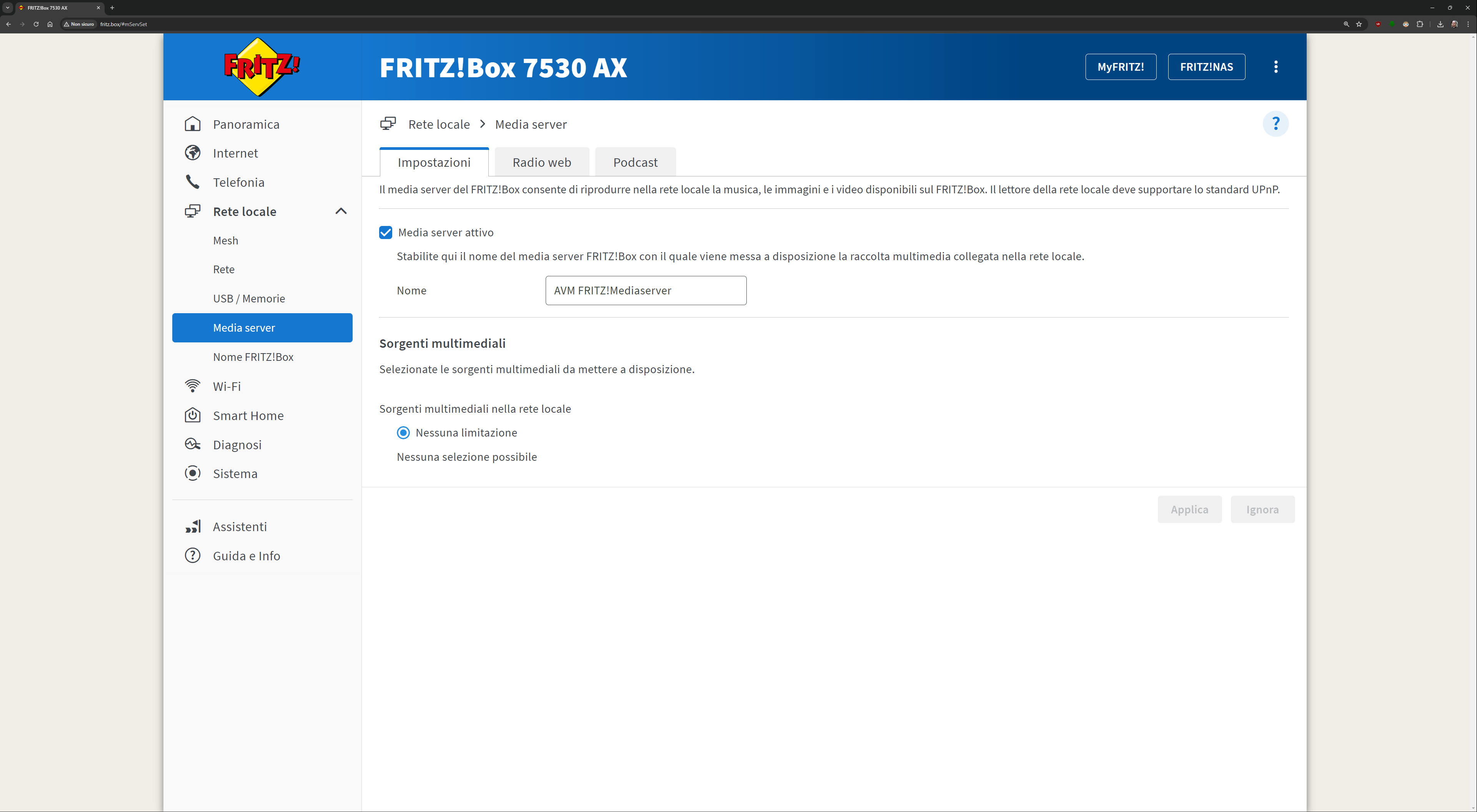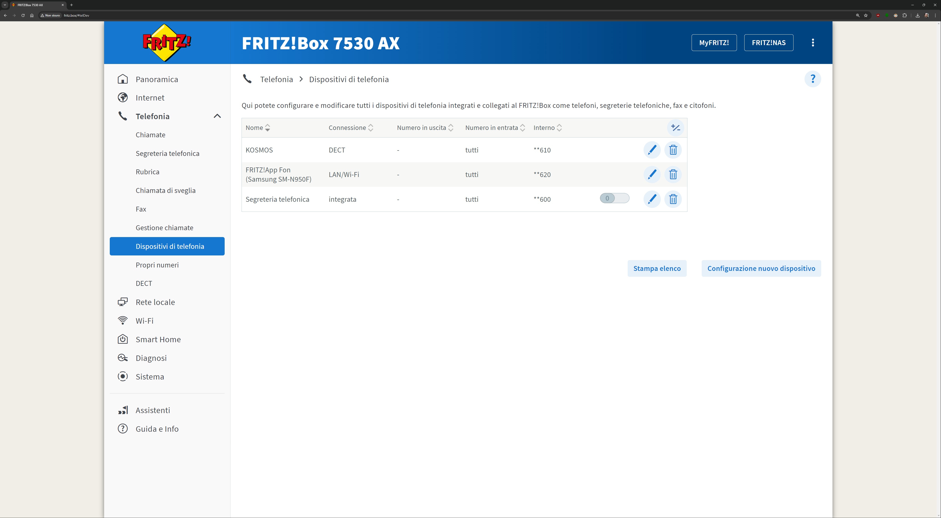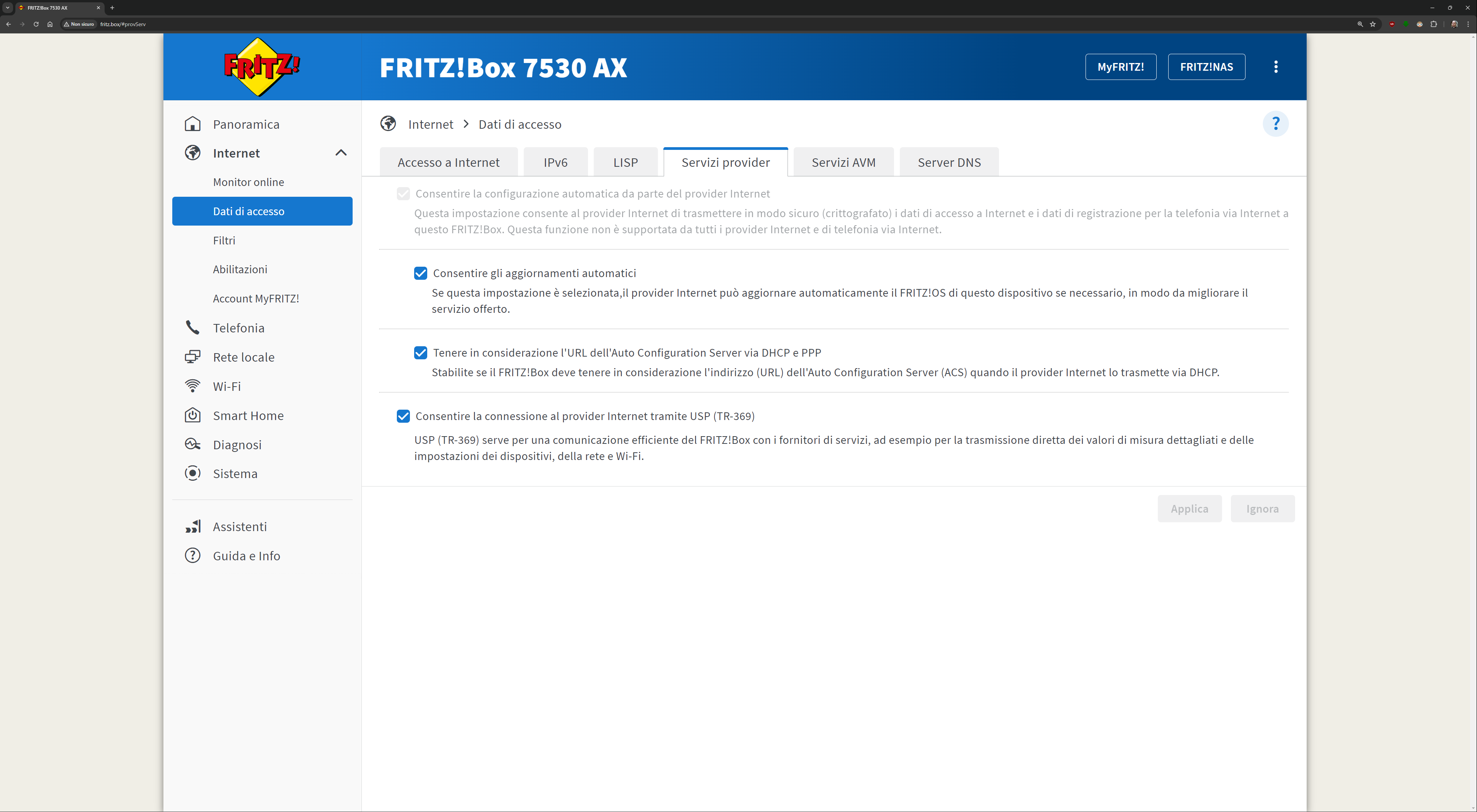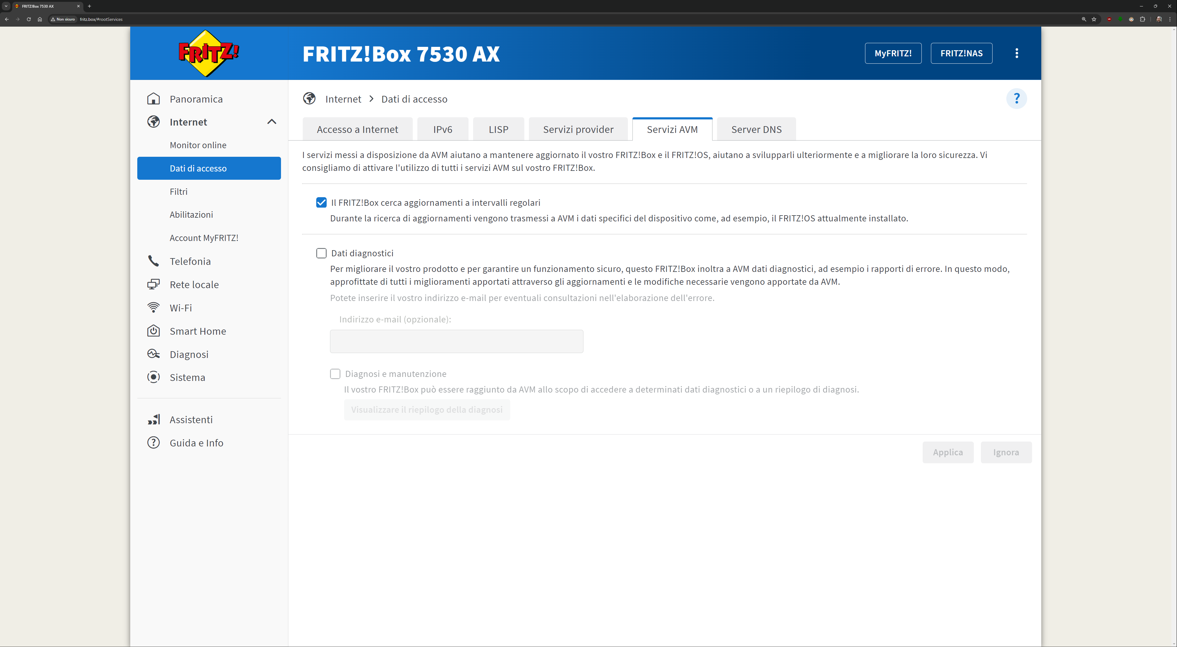 L’interfaccia presente all’indirizzo fritz.box una volta collegati al FRITZ!Box è davvero esaustiva. Ecco quindi una sfilza di screenshot dell’interfaccia. Molti indirizzi IP/MAC sono stati oscurati per ovvie ragioni di sicurezza: