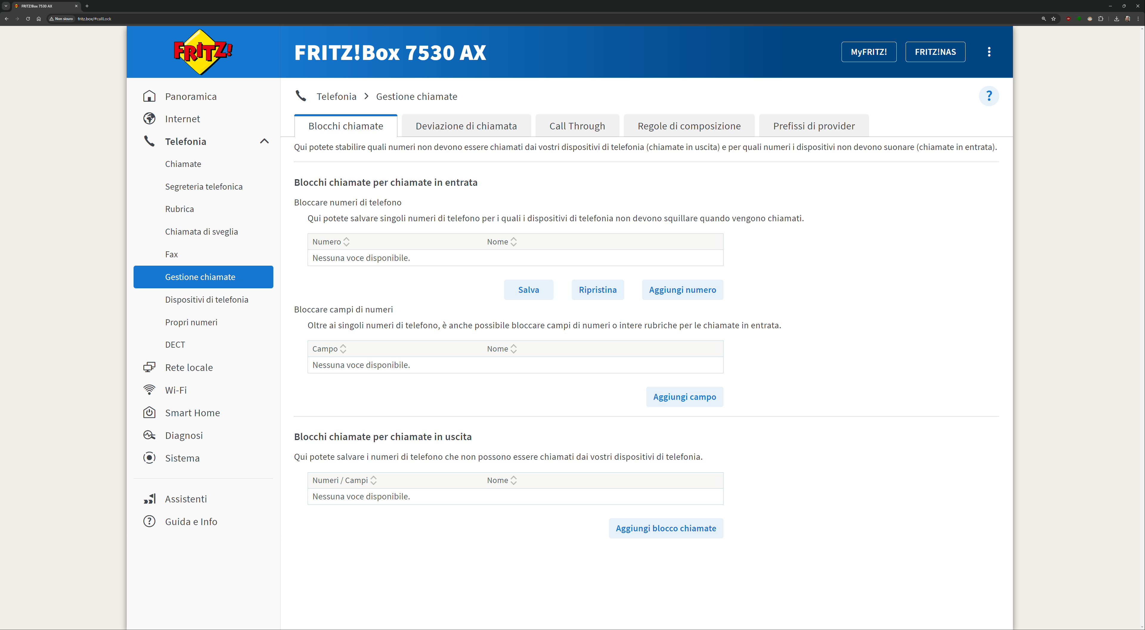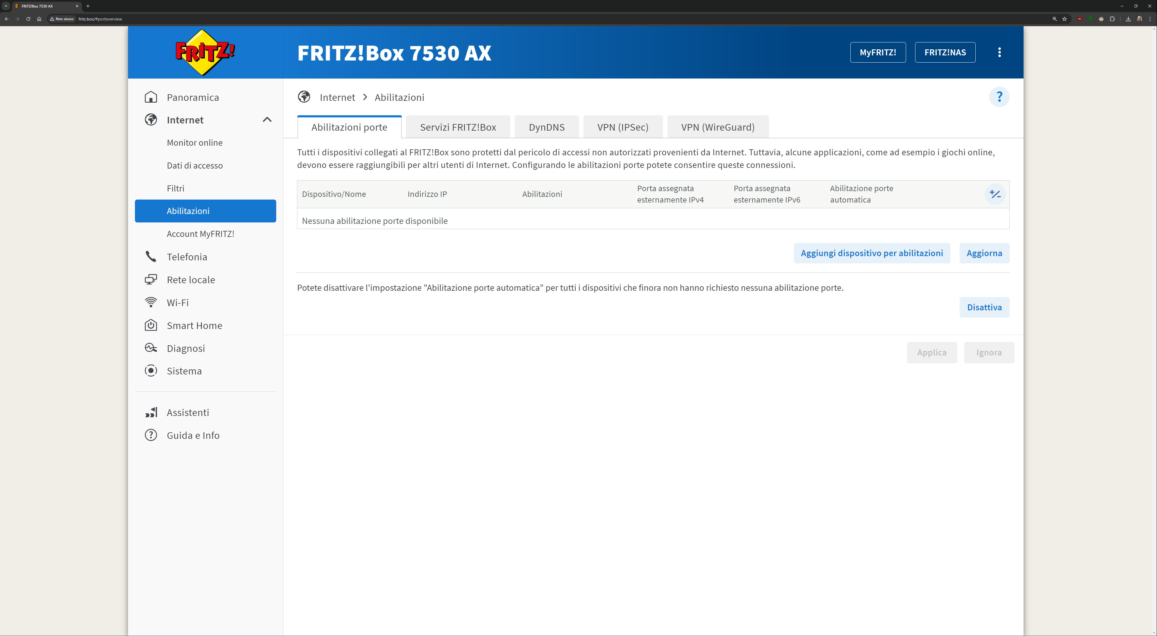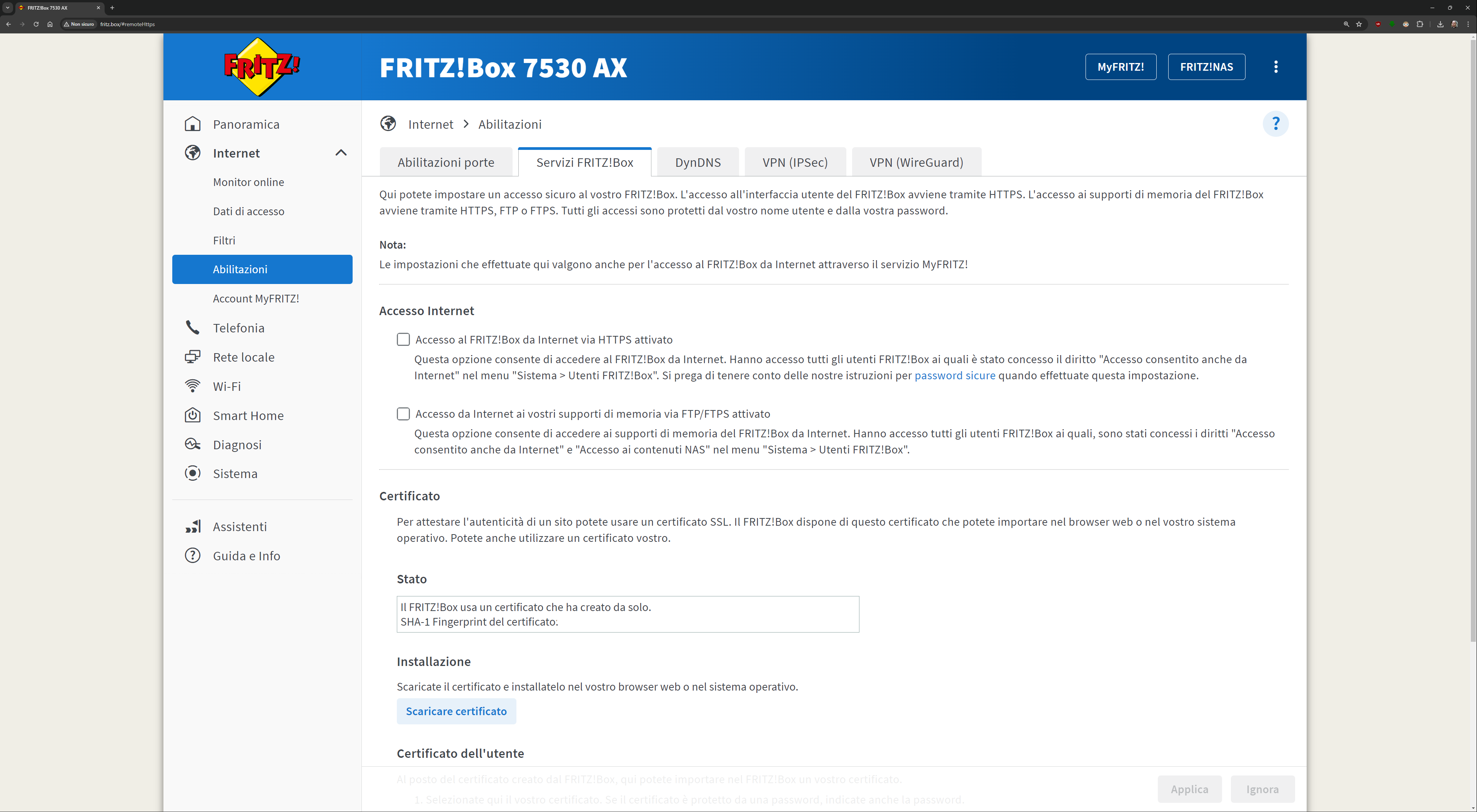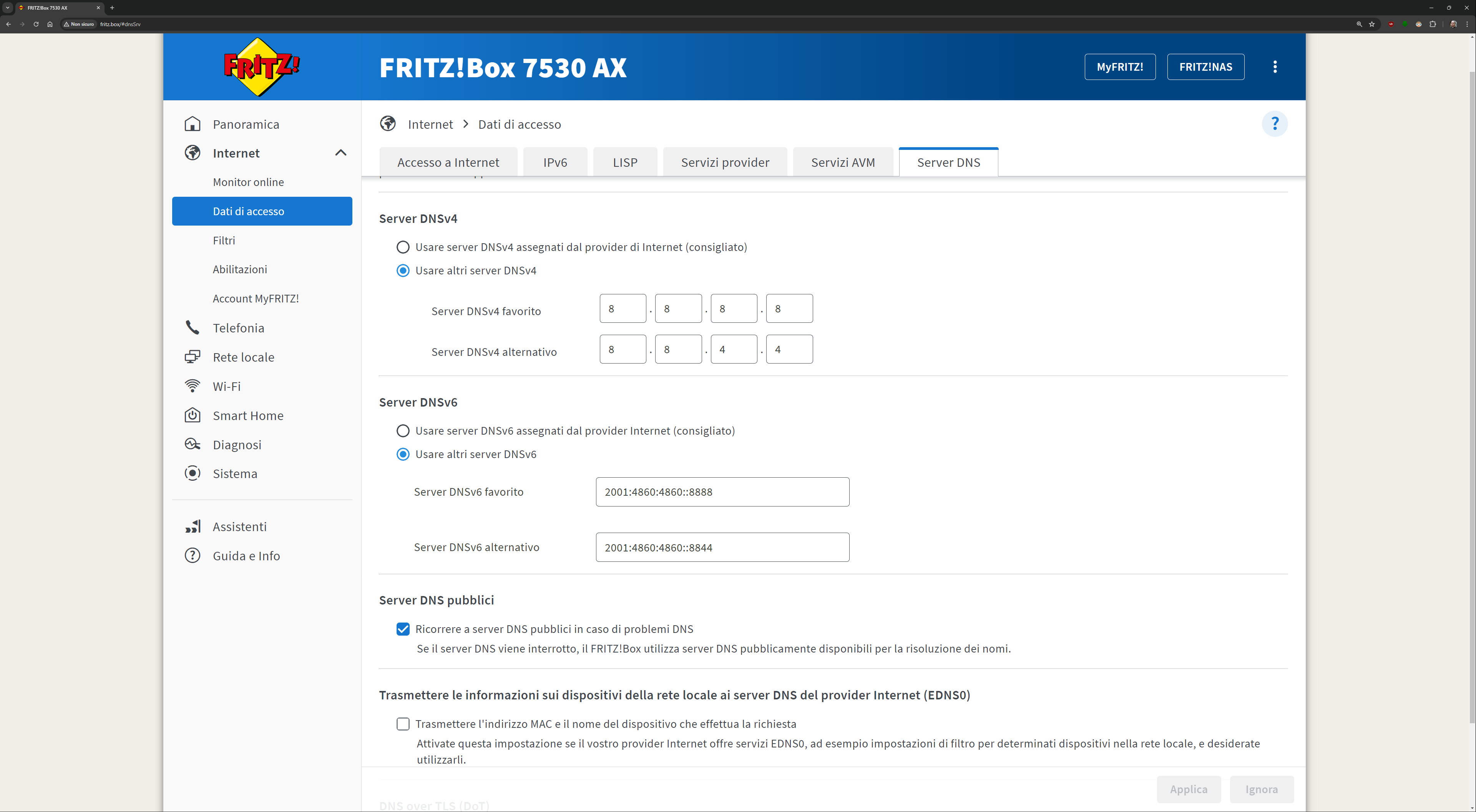 L’interfaccia presente all’indirizzo fritz.box una volta collegati al FRITZ!Box è davvero esaustiva. Ecco quindi una sfilza di screenshot dell’interfaccia. Molti indirizzi IP/MAC sono stati oscurati per ovvie ragioni di sicurezza:
