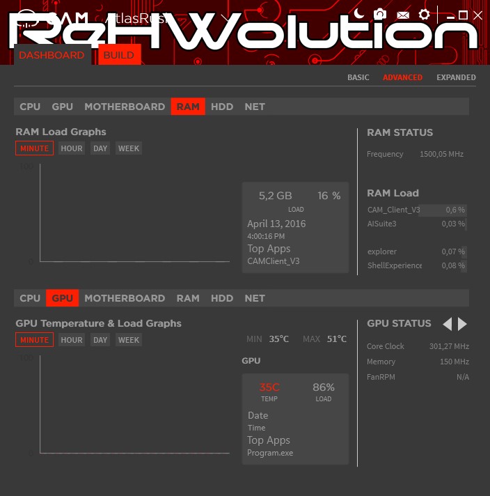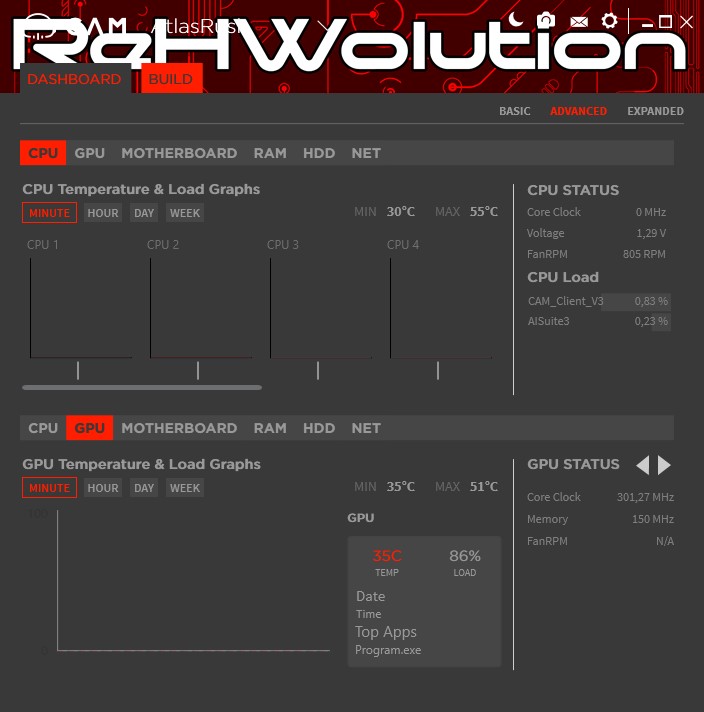 CAM è il software NZXT responsabile del monitoraggio (e della gestione) dei valori operativi del proprio PC. Totalmente gratuito e scaricabile all’indirizzo https://camwebapp.com/, CAM consente, qualora avessimo nel nostro sistema un dissipatore Kraken, un sistema HUE e/o un sistema GRID, di gestire colori, temperature e velocità ventole, il tutto da un’unica interfaccia. Qualora non disponeste di alcuno di questi sistemi, l’applicazione consentirà comunque di monitorare totalmente il proprio PC. Nelle schermate a seguire potete vedere tutte le schede di gestione: