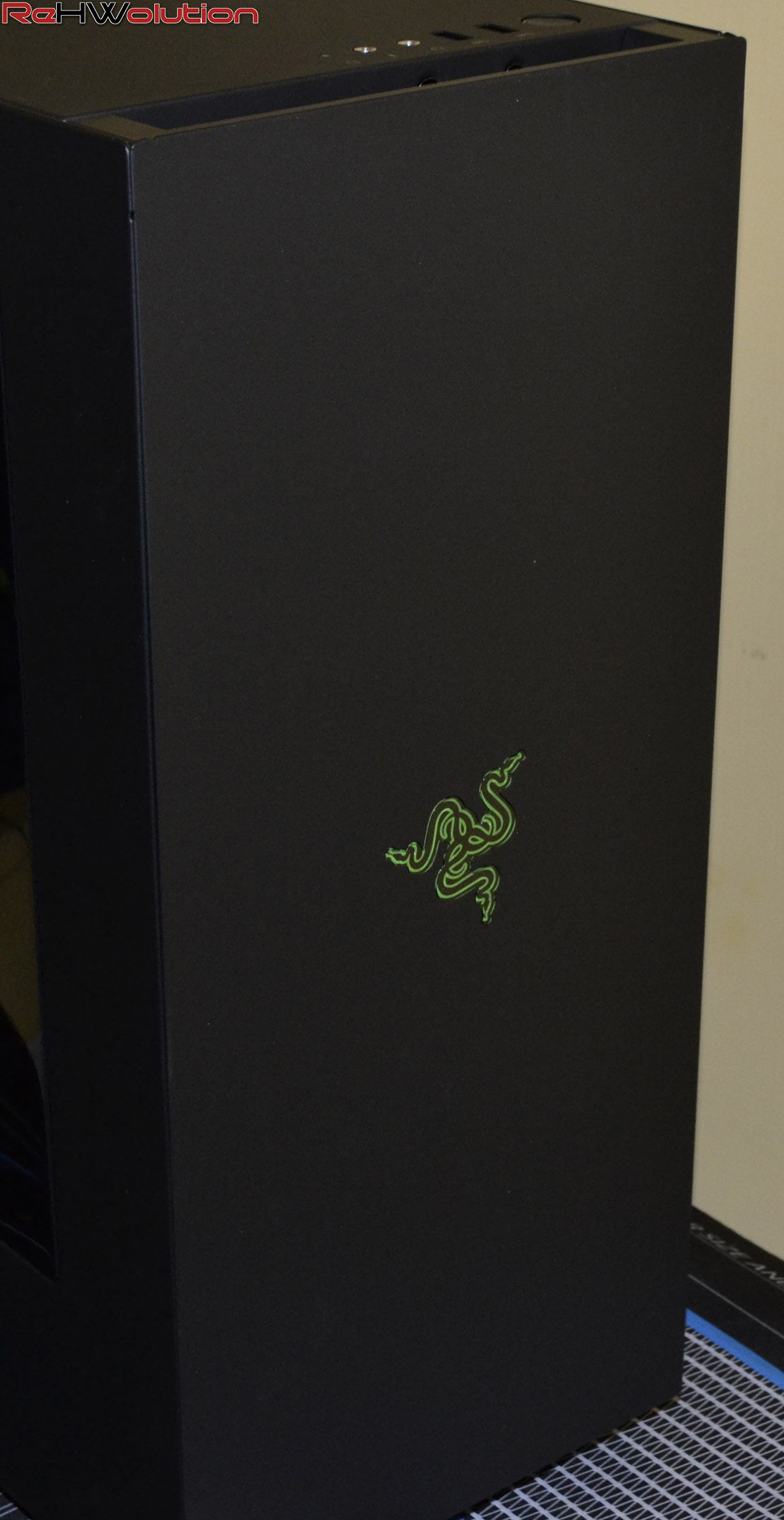 La personalizzazione Razer del case impone, da tradizione, un look totalmente “stealth”, con il nero opaco a farla da padrone. Nella parte inferiore del case, troviamo due barre LED integrate nella struttura, ovviamente di colore verde, che portano con sé un look simile a quello di un’auto da corsa elaborata.