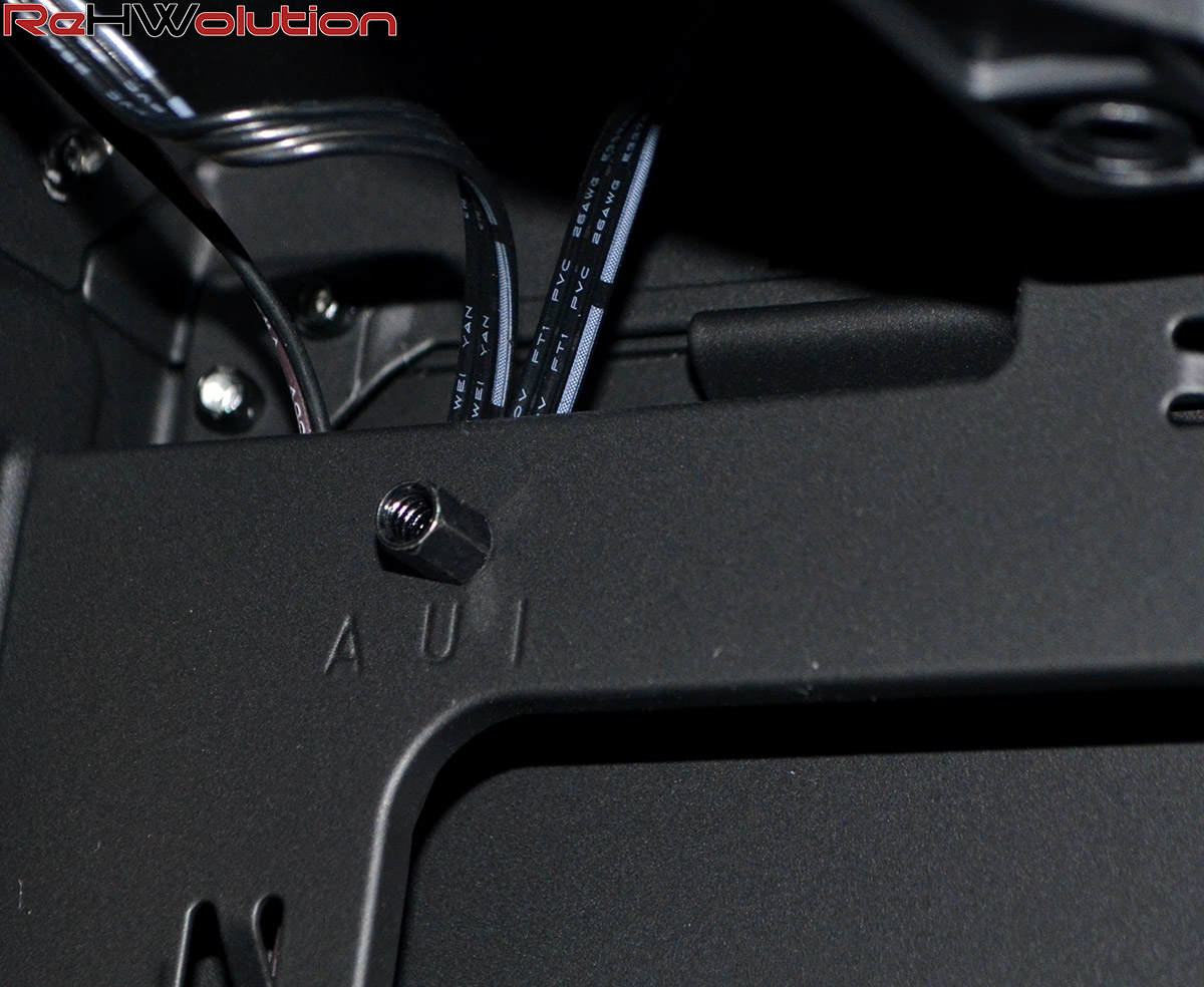 Interessante la gestione dell’installazione del PSU: tramite un bracket, è possibile rimuoverlo (per manutenzione o pulizia) svitando 4 thumbscrews, mentre i pannelli laterali dello chassis dispongono di viti thumbscrew con una rondella per evitare di perderle.