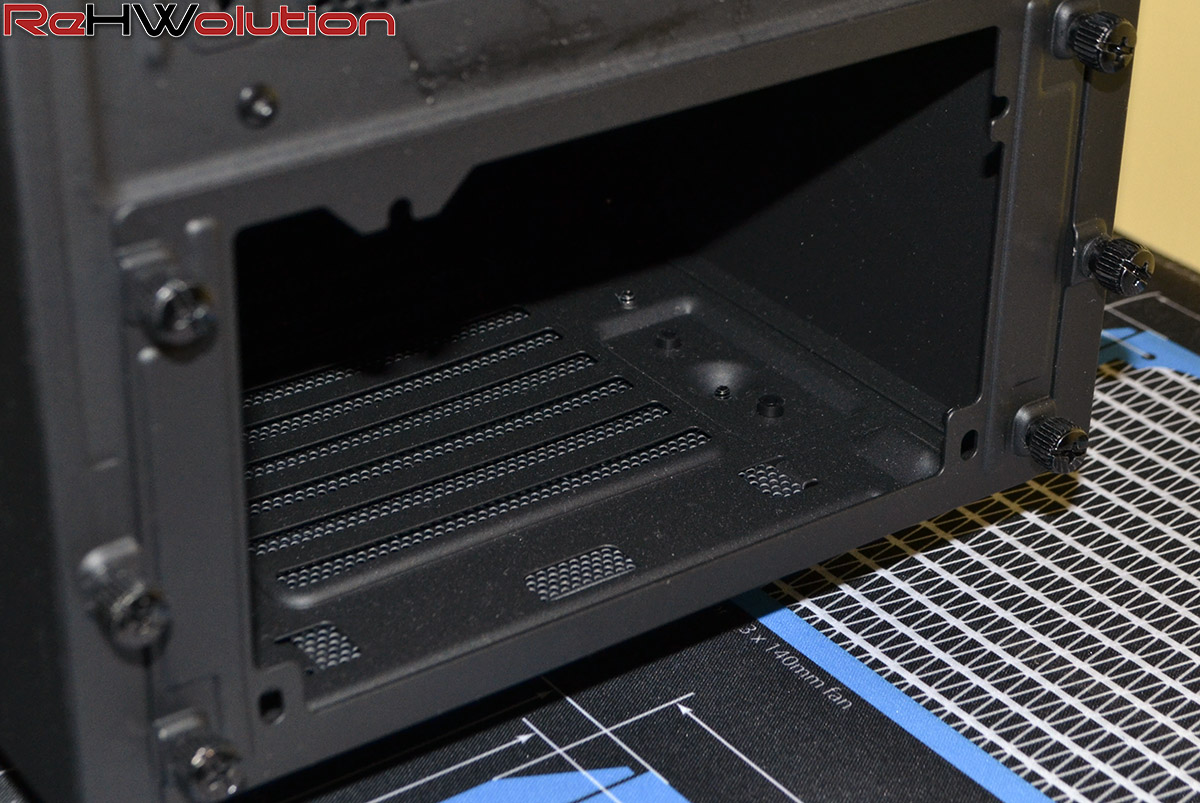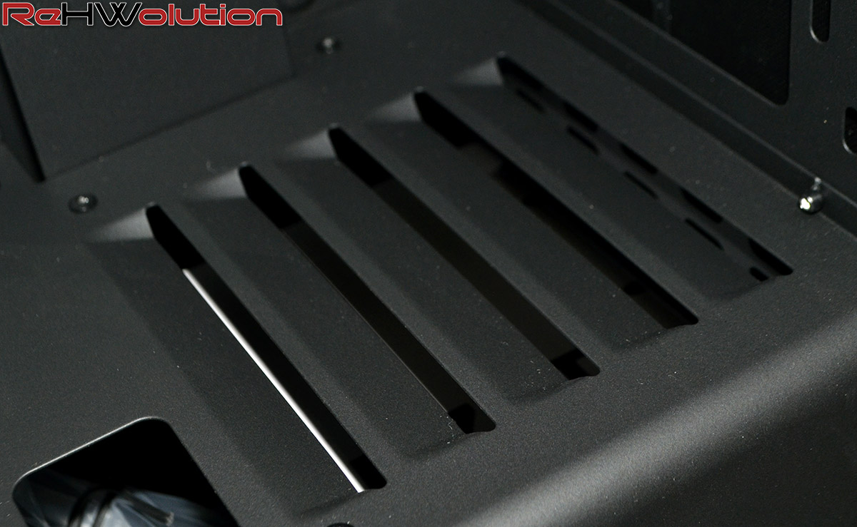 Partiamo dalle particolarità: il case non ha slot da 5.25″, scelta che se da un lato taglia nettamente con il passato (unità ottiche? Chi le usa più?), dall’altro castra inevitabilmente le possibilità di installare Rheobus o vaschette per sistemi di raffreddamento a liquido. Guarda caso, l’azienda al prezzo di 30$ propone un fan controller proprietario da installare all’interno dei propri case. Coincidenze? Non credo proprio.