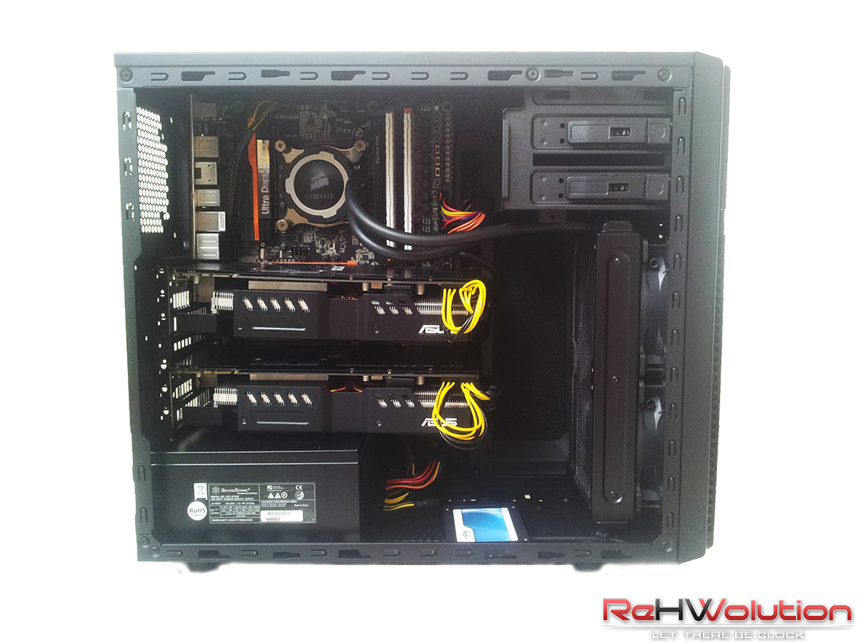 Da notare come un Mid-Tower così compatto sia in grado di contenere insieme un dissipatore AIO da 140mm e un sistema multi-GPU triplo slot.