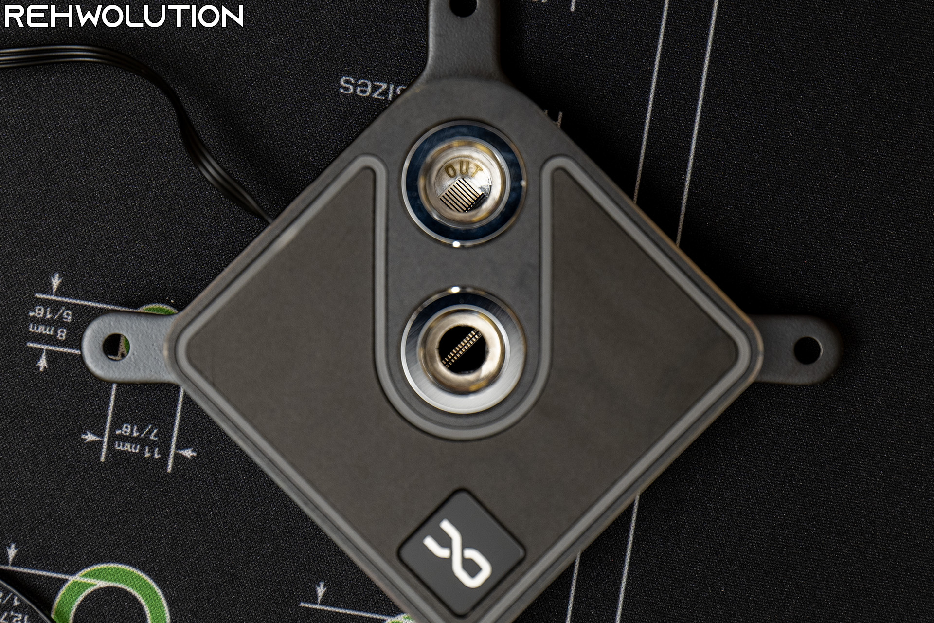 Molto bello il design del CORE 1 Aurora, con un corpo interamente metallico (un misto di ottone per il top e rame per la heatplate) con una striscia RGB che attraversa la parte superiore del blocco. L’inlet è la porta G1/4″ centrale, mentre l’outlet è la porta situata in basso a destra.
