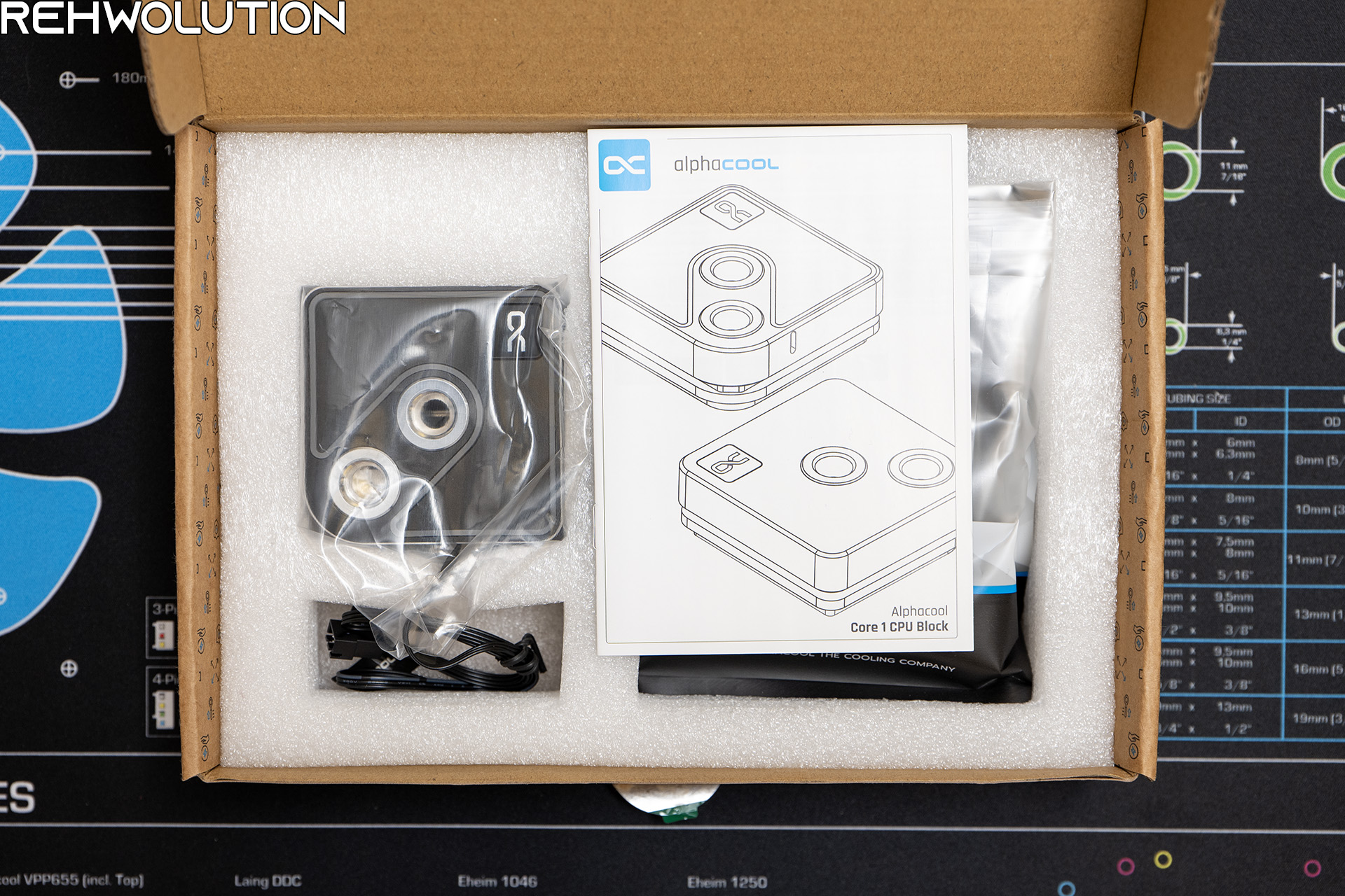 All’interno della confezione, troviamo il waterblock in un inserto in spugna insieme al manuale d’installazione e a tutto il necessario per montare il CORE 1 Aurora su piattaforme Intel LGA1700 e su AMD AM4 ed AM5. Per l’installazione su piattaforme HEDT dovrete optare per un waterblock differente.