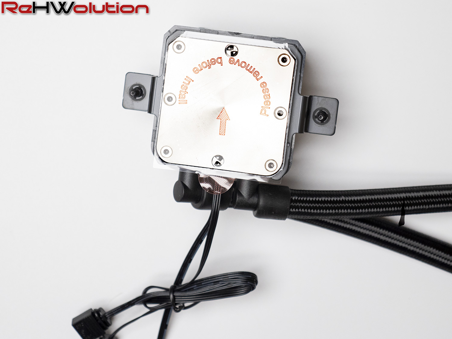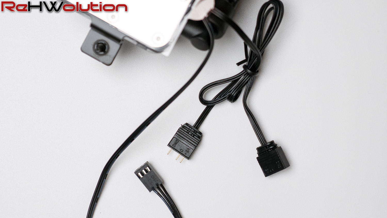 L’unità combo Waterblock/pompa dispone inoltre di illuminazione ARGB, controllabile sia tramite un header ARGB 3 pin a 5 Volt che tramite l’apposita centralina di comando dotata di 3 pulsanti ed indicatore LED: