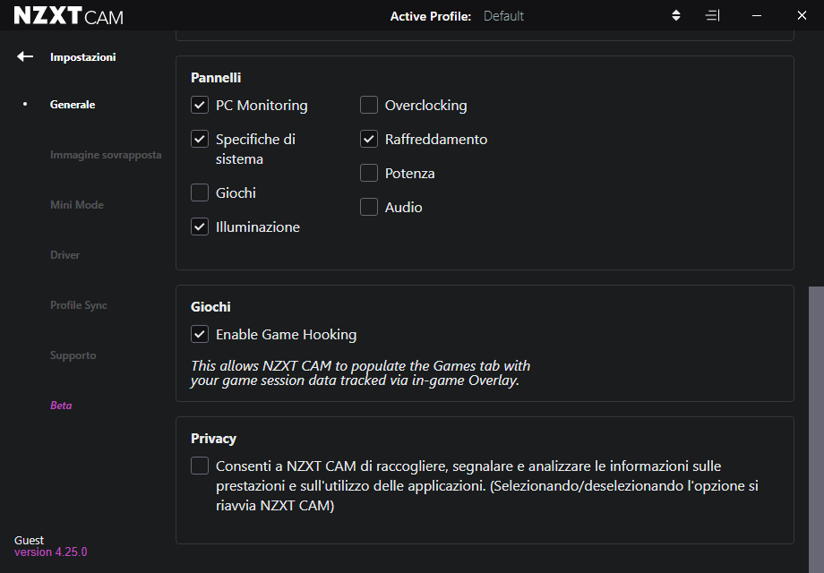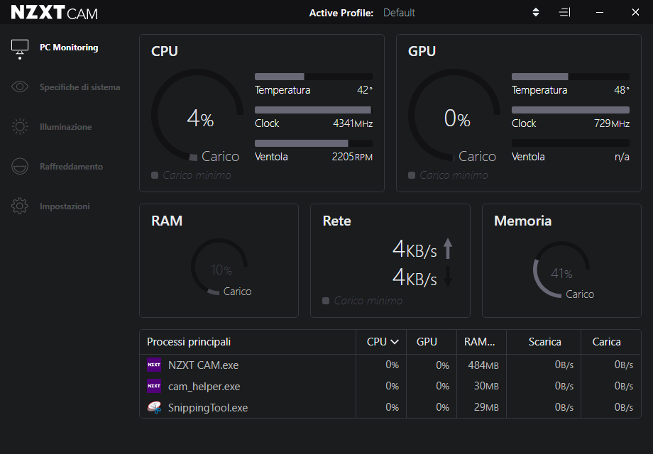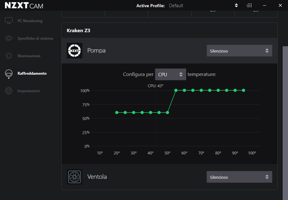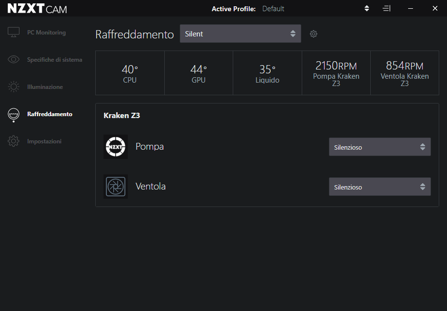 Ecco alcuni screenshot di NZXT CAM, il software per la gestione di tutti i parametri di raffreddamento ed illuminazione dell’AIO: