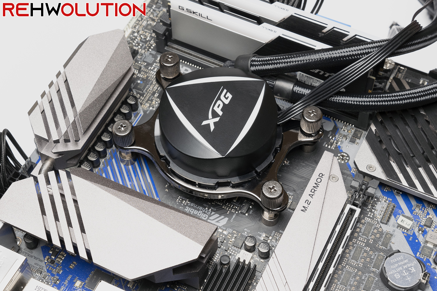 In seguito abbiamo posizionato l’unità waterblock/pompa sul processore, precedentemente configurata con il bracket di installazione per socket AMD AM4, sul processore, avendo cura di avvitare le thumbscrew per fissare il waterblock al sistema: