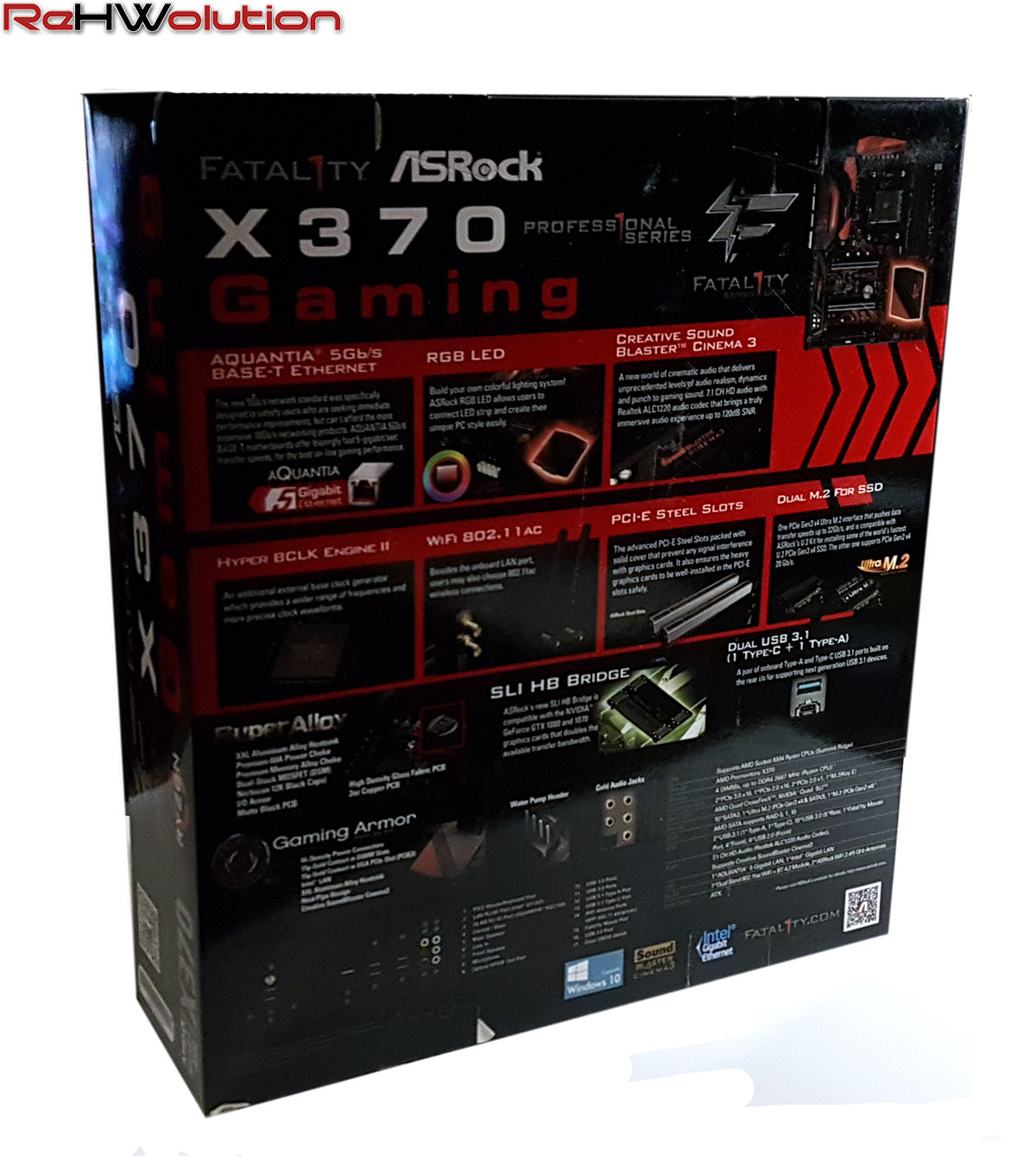 È presente infatti il supporto a memorie DDR4 con frequenza da 3200 MHz e superiori (ma ciò dipenderà sempre dai fattori spiegati nella pagina di questa review dedicata alla compatibilità delle RAM con Ryzen), e sono presenti molte (se non tutte) delle features che ritroviamo sulla controparte per Z270 (la Fatal1ty Z270 Professional Gaming i7, recensita in un nostro video QUI), con la differenza ovviamente nel supporto a GPU (visto che Ryzen 7 dispone di “sole” 16 linee PCIe 3.0); la connettività è vastissima, con un chip AQUANTIA Ethernet che consente di avvalersi delle ultime revisioni dello standard Gigabit, con velocità fino a 5 Gbit disponibili.