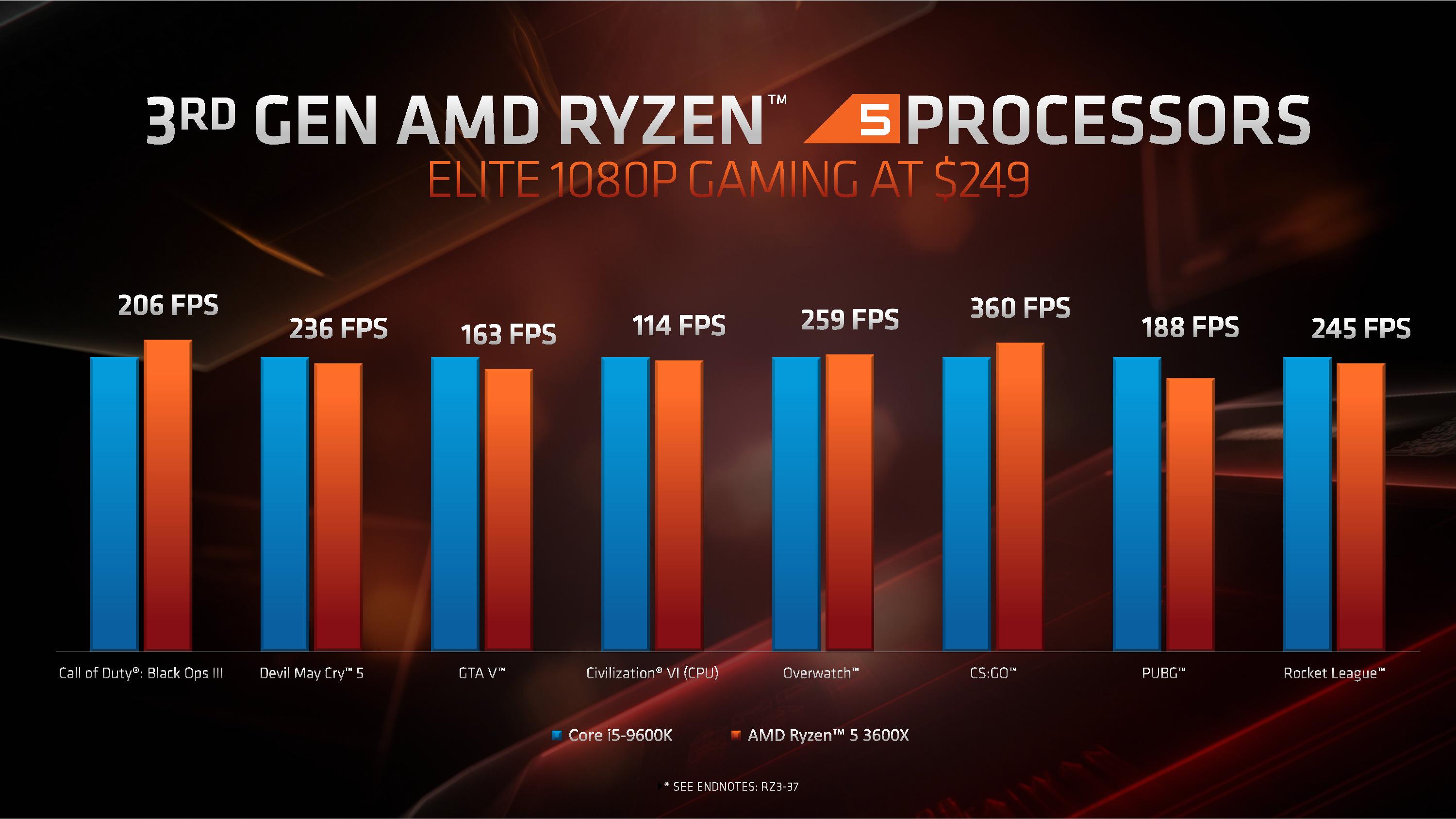 Quando l’azienda si paragona invece alle soluzioni Intel, AMD ha fissato i test alla risoluzione Full HD, con una vasta serie di giochi famosi, ancora paragonando processori simili per numero di core e prezzo.