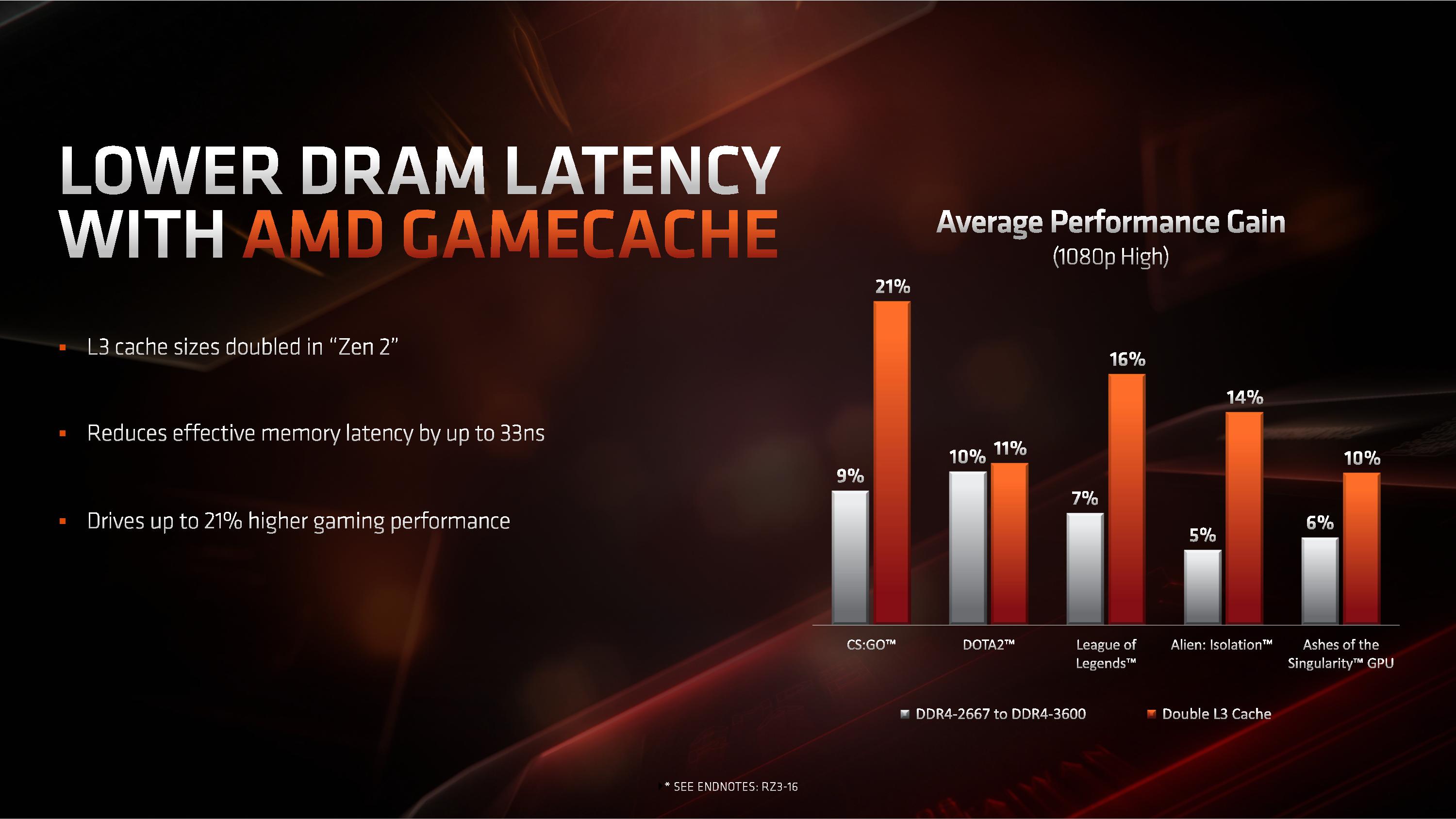 AMD ha anche detto parlato del nuovo design della cache L3, andando da 2 MB/core a 4 MB/core; raddoppiando la cache L3, secondo AMD, si riesce ad avere un aumento di prestazioni in gaming, in Full HD, che varia tra l’11% e il 21% quando si utilizza una GPU dedicata.
