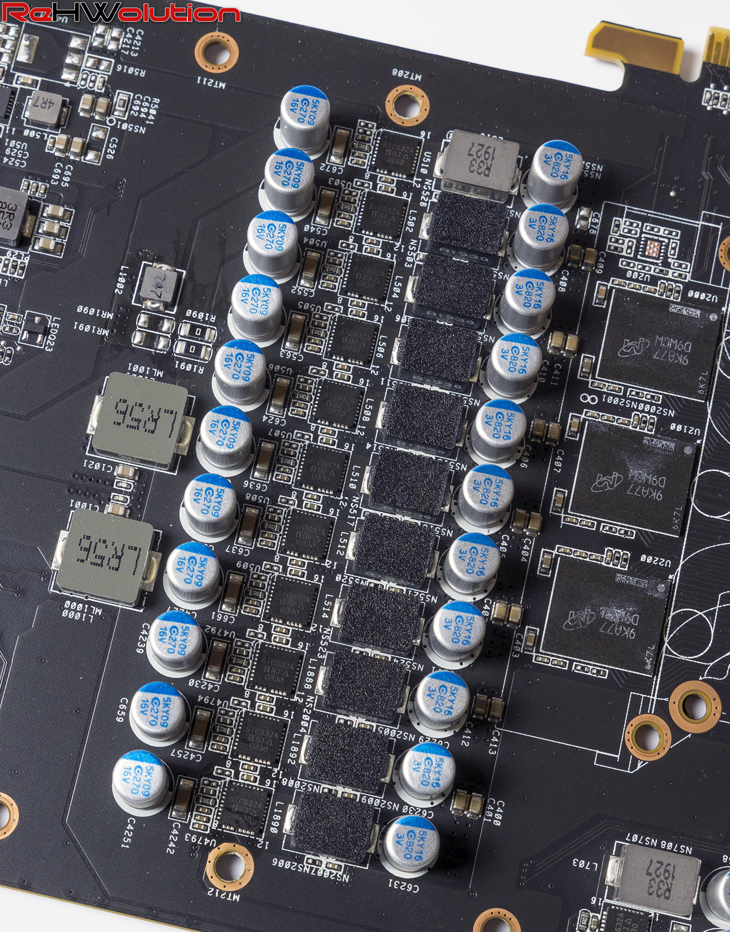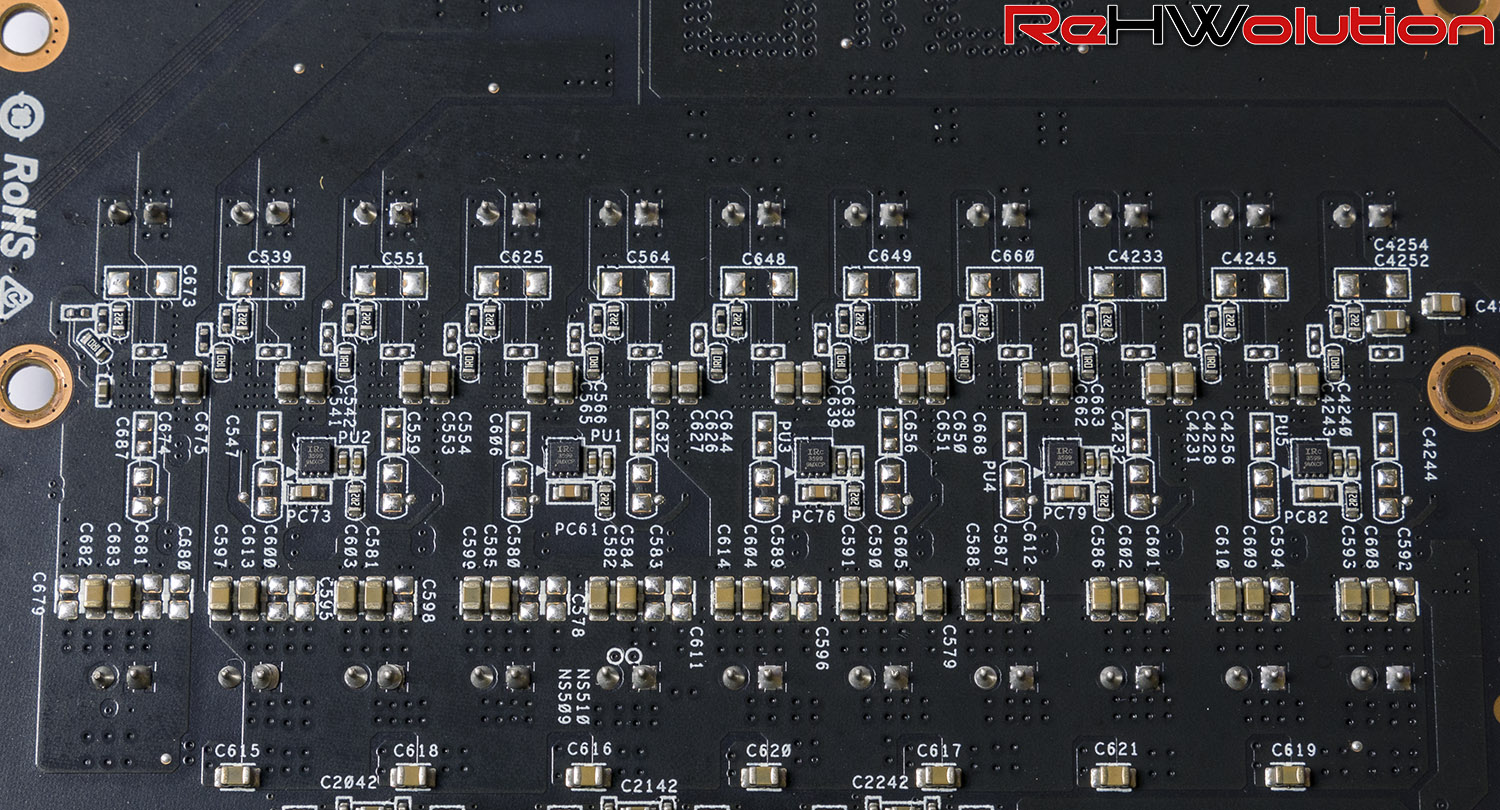 Con un totale di 500 Ampere a disposizione, la sezione di alimentazione della ASRock Radeon RX 5700 XT Taichi X 8G OC+ è più che sufficiente a gestire la GPU, sia a stock che in overclock, volendo anche sotto LN2.
