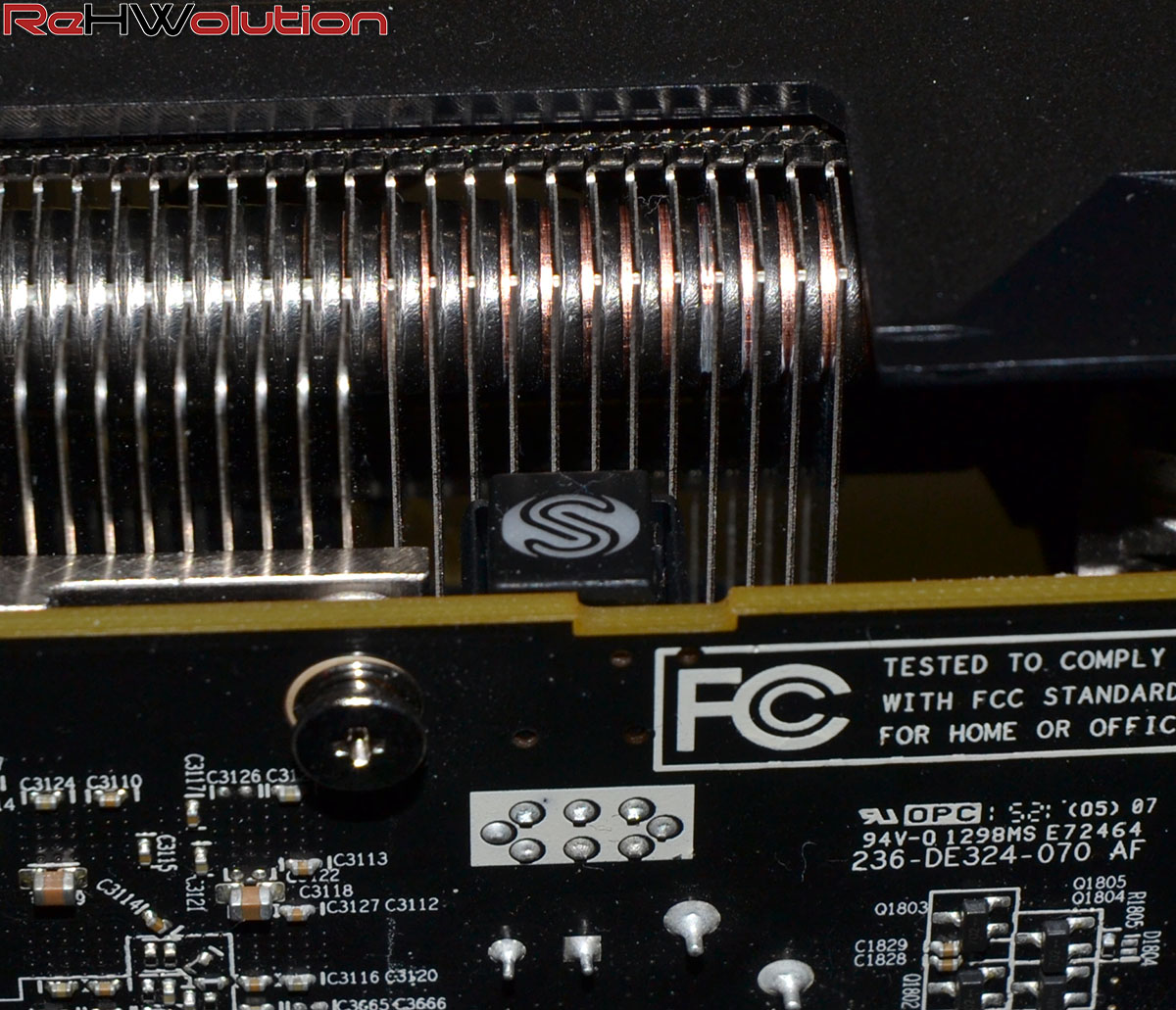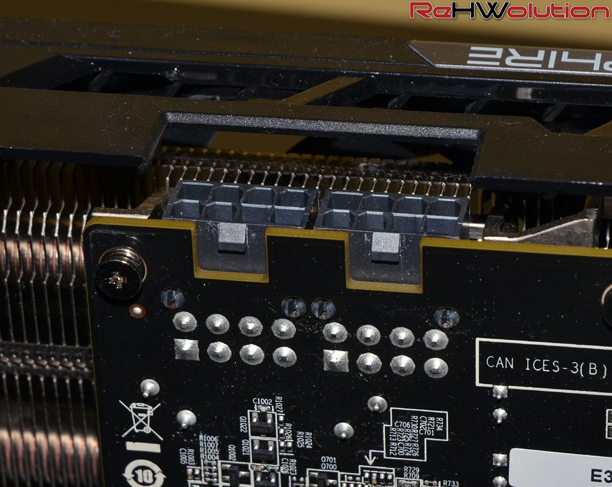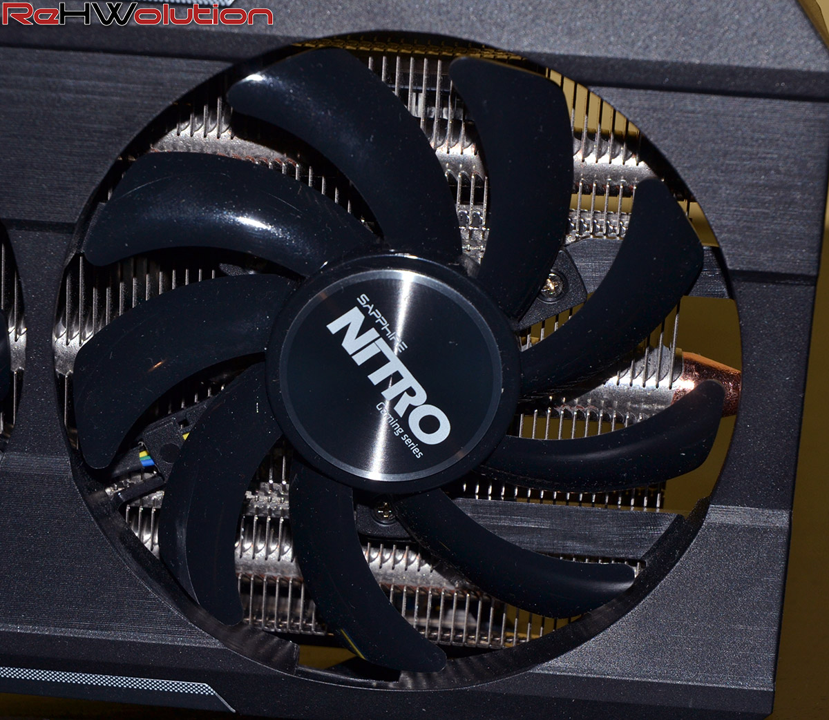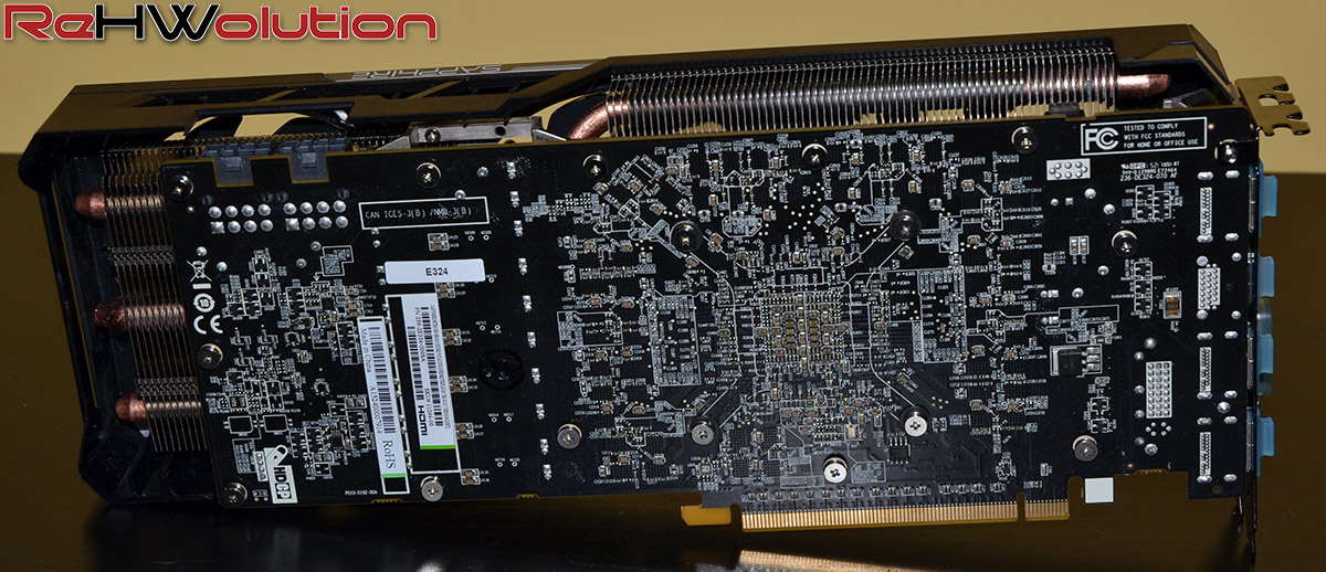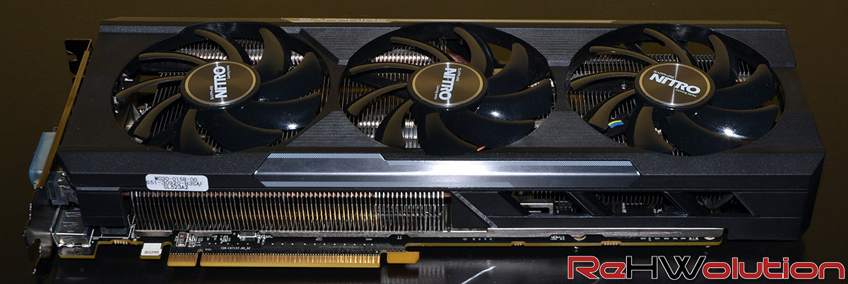Il dissipatore, di tipo custom, è costituito da un voluminoso corpo lamellare saldato alle heatpipes e ad un grosso blocco in rame che fa da superficie di scambio con la GPU. Le ventole, invece, seguono la filosofia Tri-X, con ben tre ventole da 92 mm a raffreddare le alette in alluminio.