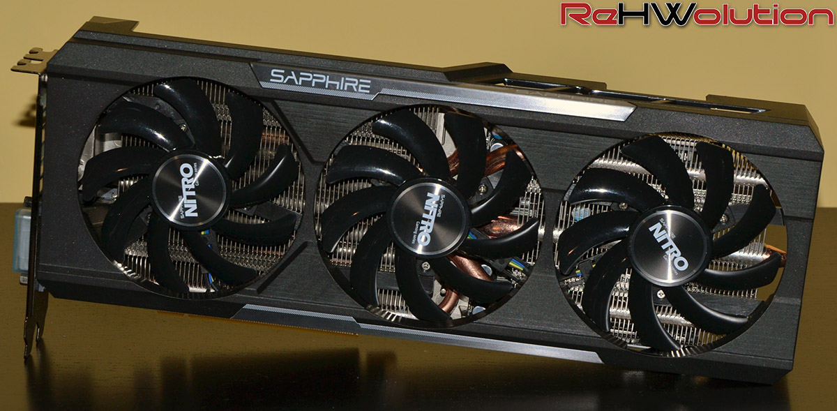 Il design è incredibilmente simile al classico Tri-X, ma la serie Nitro presenta colori più classici (nero e argento), adattandosi alla perfezione a praticamente ogni sistema. Il dissipatore presenta il tradizionale sistema a 3 ventole di Sapphire (Tri-X, appunto) e una shroud plastica nera, con, ovviamente, un PCB di tipo custom e frequenze superiori (seppur di poco) alla versione reference della scheda.