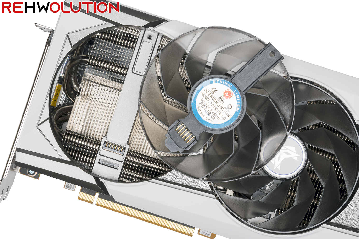 La scheda, di dimensioni davvero generose, presenta un look total white con alcuni dettagli in grigio chiaro che la rendono decisamente meno monotona ed accentuano il feeling “premium” della RX 6950 XT PURE della serie NITRO+. La shroud che circonda il corpo lamellare è composta interamente di una lega alluminio-magnesio che ne rafforza la rigidità e la solidità strutturale senza inficiare troppo sul peso totale della GPU.