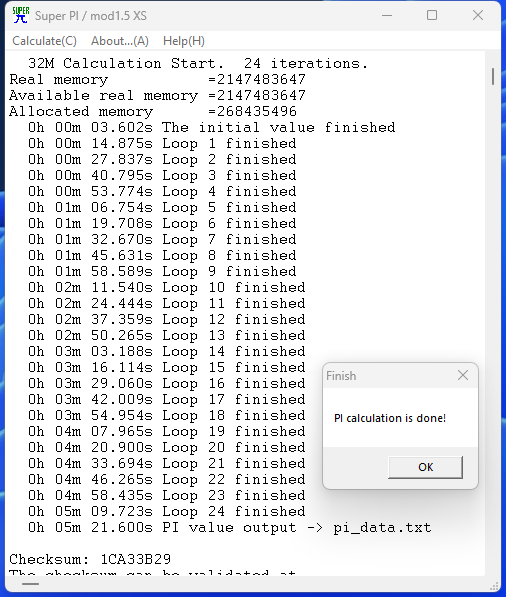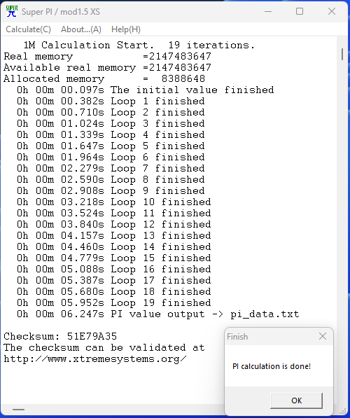 Un metodo tradizionale per verificare le prestazioni del proprio PC è utilizzare SuperPI mod 1.5 XS: il programma si occupa di calcolare dalle 16k ai 32M di cifre dopo la virgola del π, con una scalabilità clock per clock davvero sorprendente per un programma creato nel 1995. Utilizziamo questo benchmark ancora oggi, nonostante la vetusta età, perché risulta essere un ottimo indicatore delle prestazioni del proprio processore con applicazioni legacy di tipo single-thread, e non perché ci interessa sapere quanti secondi ci mette un Core i9 o un Ryzen 9 a calcolare le cifre del π: