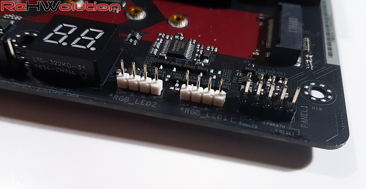 Lato storage, 6 porte SATA 3.0 e 2 porte M.2, con velocità di 32 Gbps, rendono le possibilità di installazione pressoché illimitate; la scheda inoltre presenta due header per strisce LED RGB (più uno addizionale per dissipatori AMD Wraith Spire o Max) e due header USB 3.0, cosa non molto comune sulle controparti Intel dove di solito ne troviamo soltanto uno.