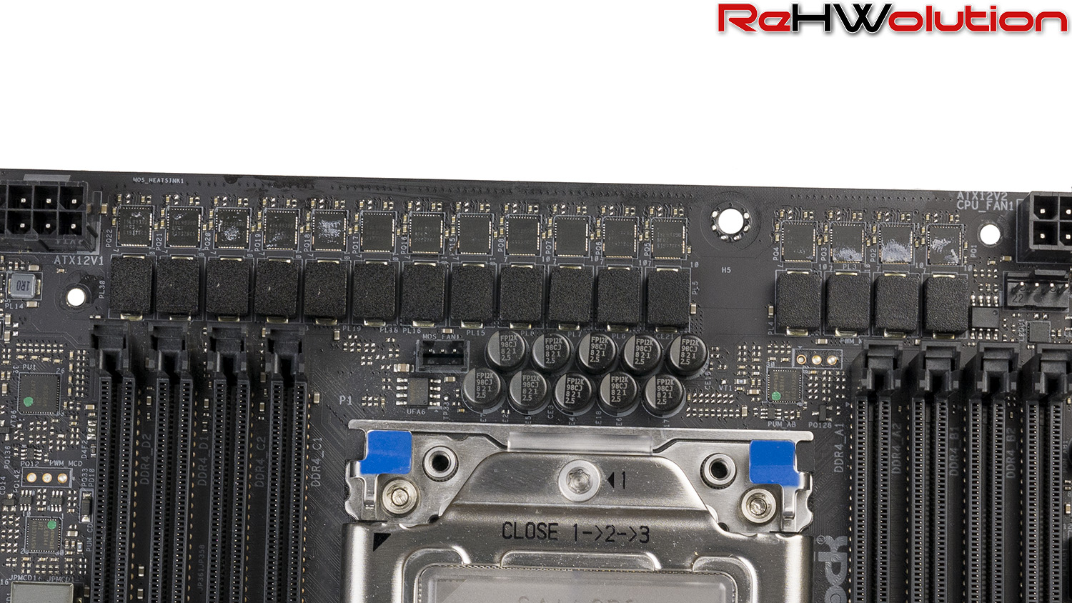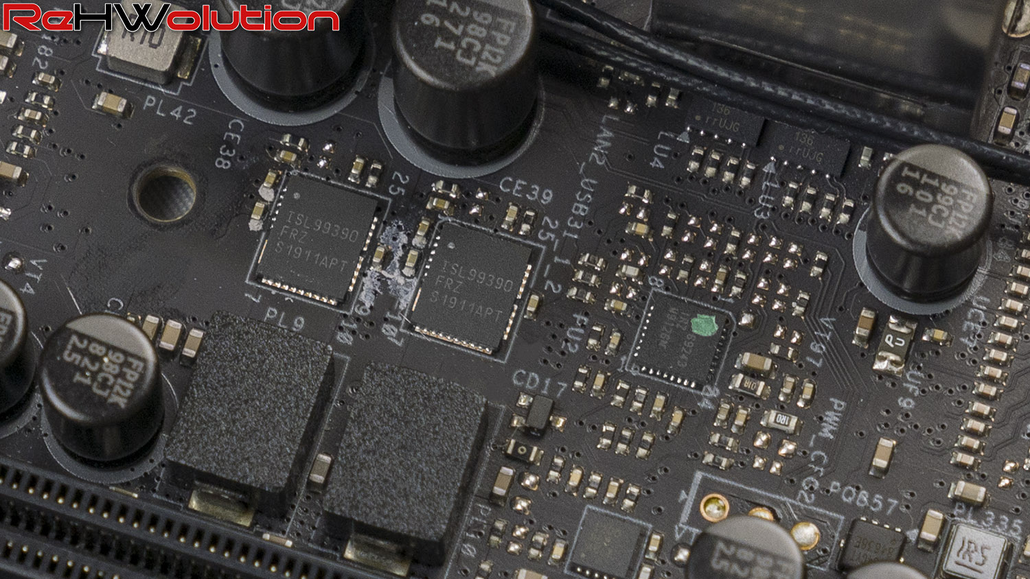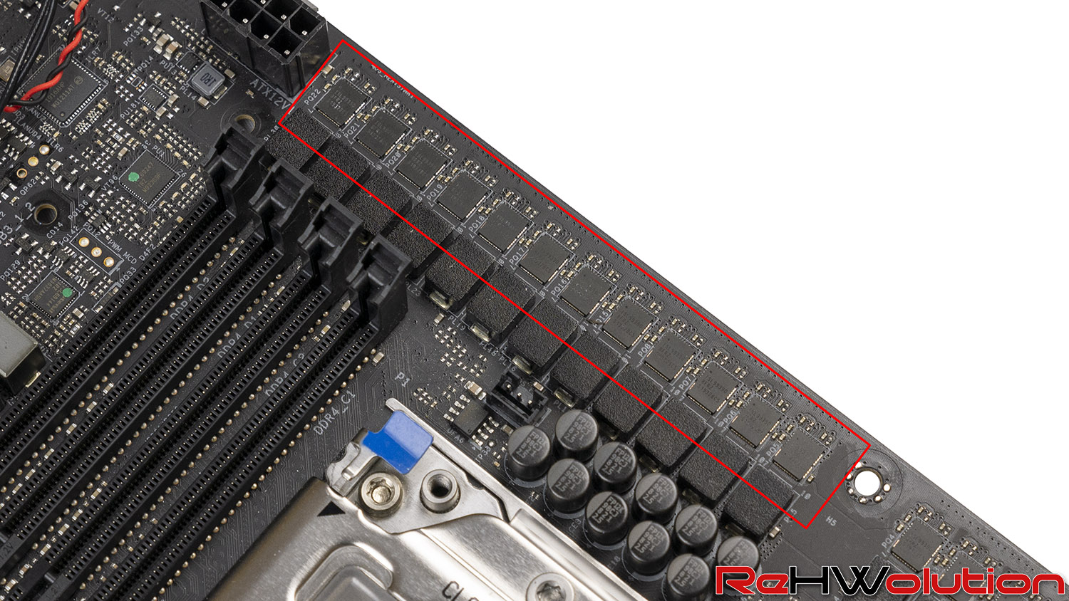 L’alimentazione delle memorie è invece affidata ad una coppia di controller ISL69144 che gestiscono, ciascuno, due fasi Vishay Siliconix SiC632A da 50 Amp ciascuna, più che sufficienti per la gestione di 8 moduli RAM anche ad altissima frequenza o persino sotto overclock estremo con LN2.