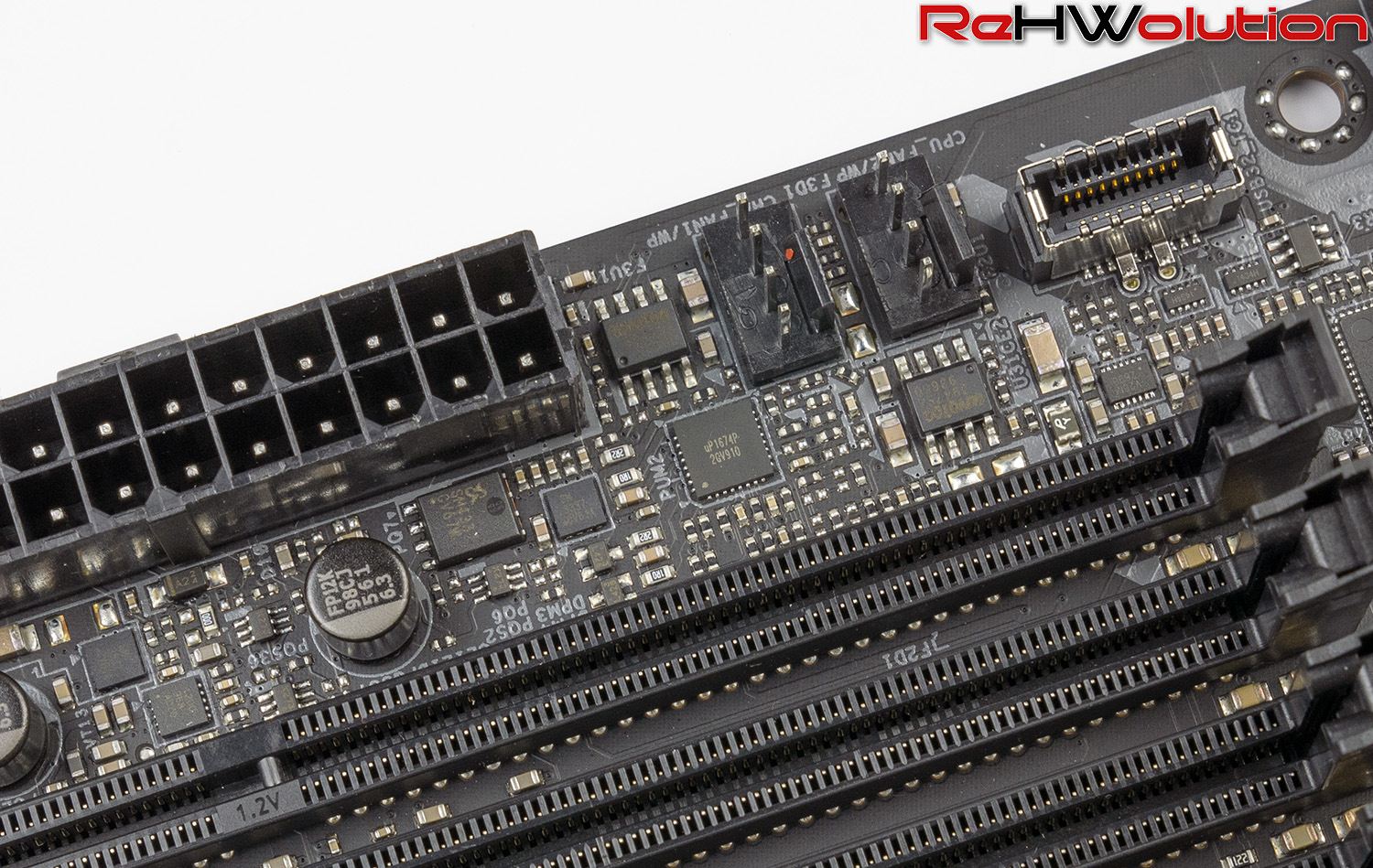 Il sottosistema delle memorie è alimentato tramite quattro fasi Fairchild FDPC5030SG da 35 A, pilotate da una coppia di controller UPI uP1674P in configurazione 2+0, più che sufficienti per pilotare 8 moduli DDR4 anche ad alta frequenza o anche sotto azoto.