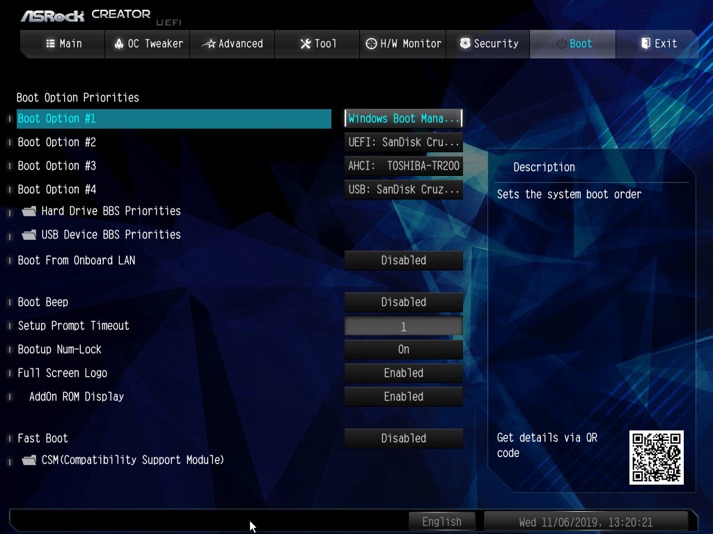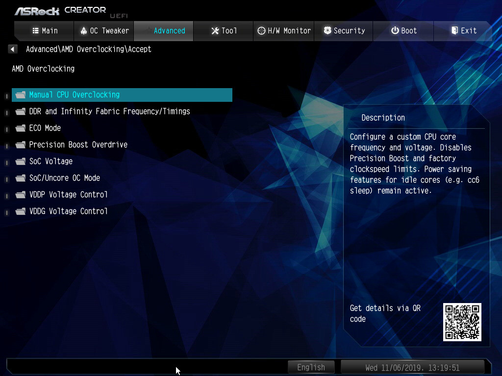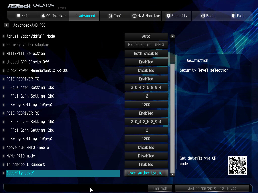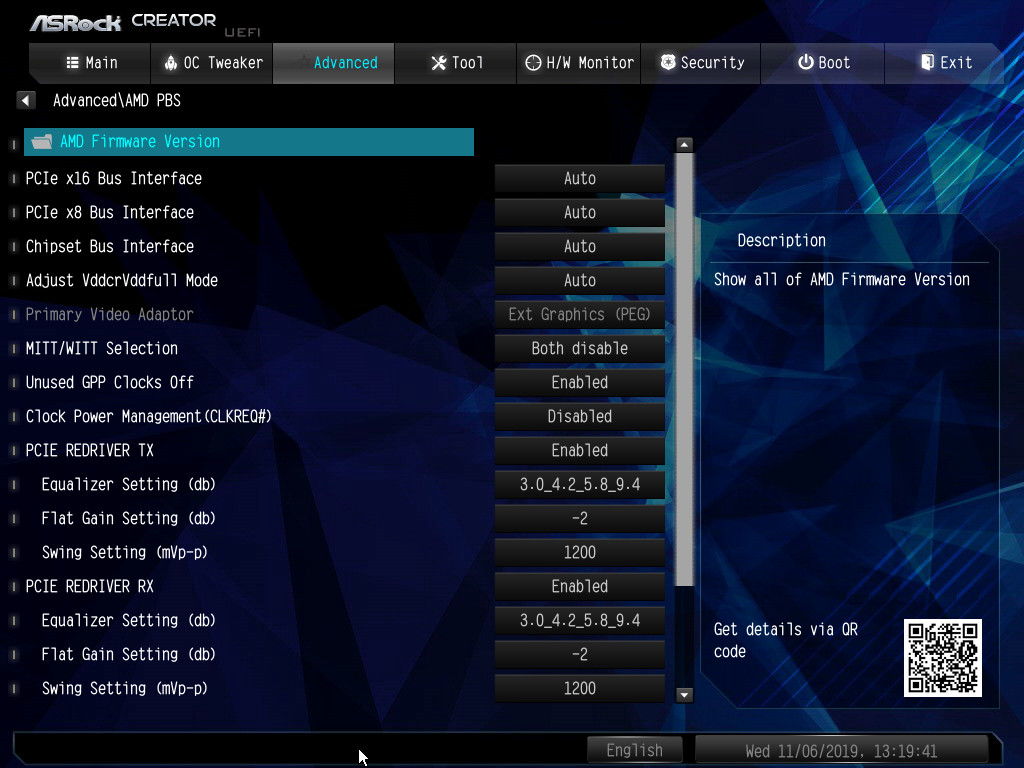 Un UEFI completo di tutto, con le classiche opzioni dei BIOS AMD (CBS e PBS) insieme a impostazioni specifiche per l’utilizzo in ambito workstation, come la possibilità di effettuare la biforcazione dello slot PCIe 16x elettrico per il collegamento di unità di storage su AIC, come la Ultra Quad M.2 Card o la Hyper Quad M.2 Card, rispettivamente PCIe 3.0 e 4.0.