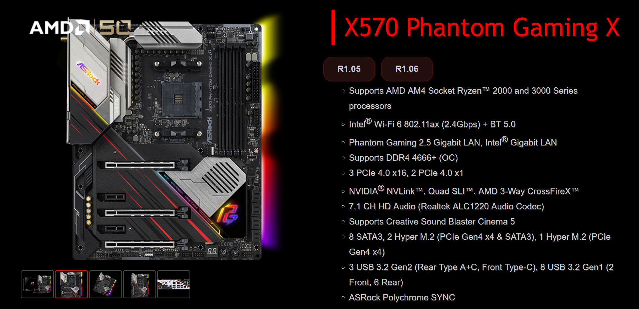 La ASRock X570 Phantom Gaming X, come suggerisce il nome, è basata su chipset X570, e con esso porta la compatibilità con tutte le CPU di 2° e 3° Generazione Ryzen, partendo dal 2300X fino ad arrivare al 3950X che vedrà il lancio tra alcuni giorni.