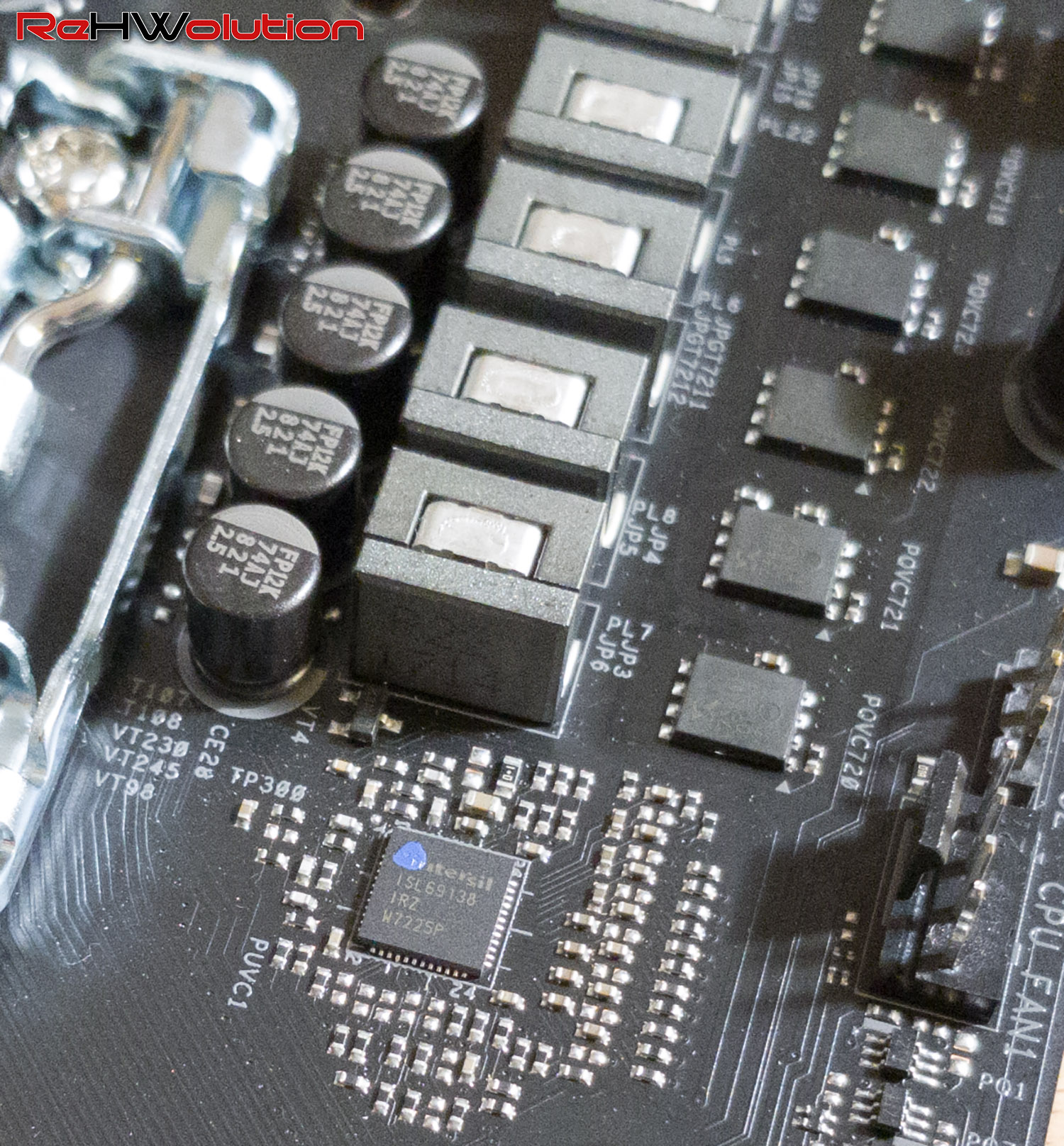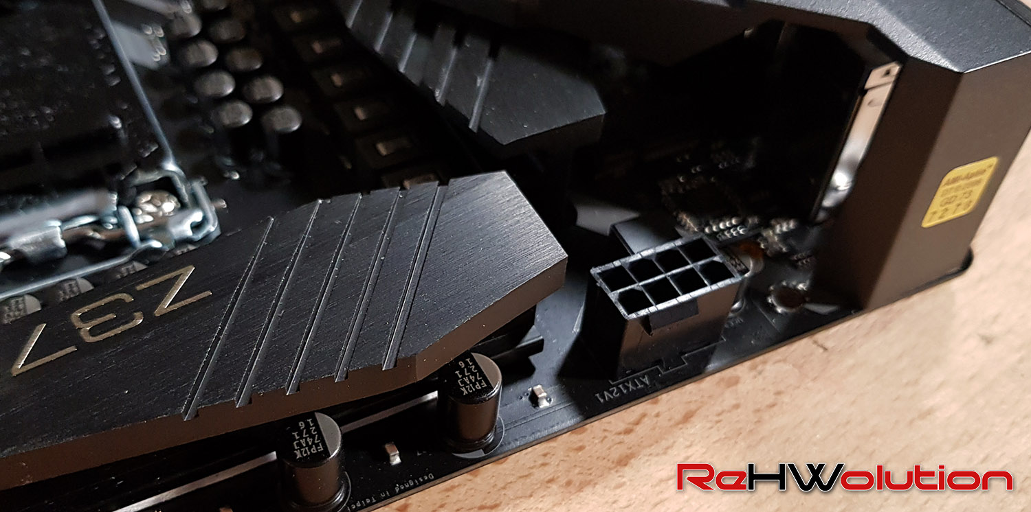Qui, invece, una breve panoramica visiva della sezione di alimentazione. Le VRM della Z370 Extreme4 vengono gestite da un controller Intersil ISL69138, che indirizza 12 fasi (suddivise in una configurazione 5+1 duplicata) SM7341EH gestite da driver/doubler ISL6596. Cosa vuol dire? Che in soldoni, avete 5+1 fasi, ma con un’efficienza superiore.