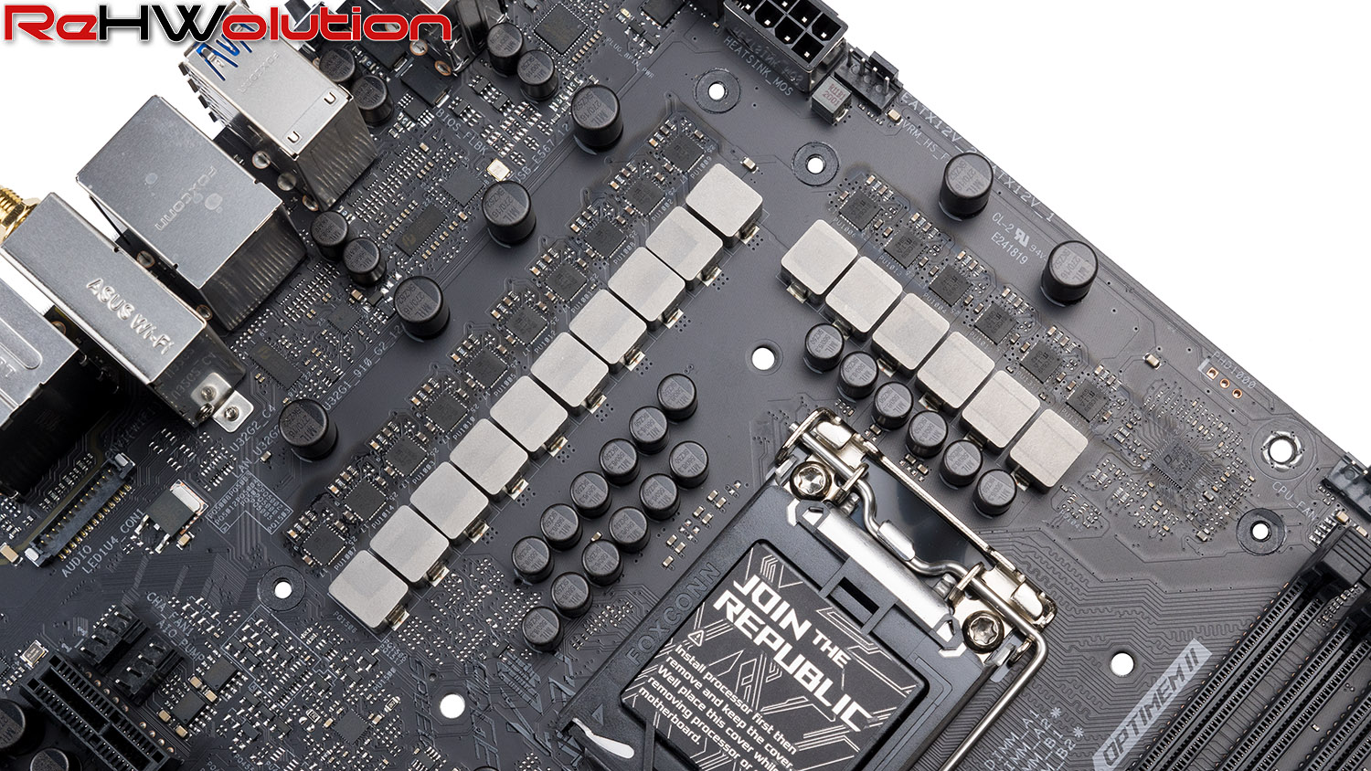 Soffermandoci sulla sezione vCPU, che è quella che ci interessa maggiormente, troviamo 14 Vishay Siliconix SiC639 da 50 A (per un totale di 700 A) in configurazione teamed, che utilizza le fasi in coppie senza utilizzare doublers PWM sul retro della scheda madre, sacrificando un po’ dell’efficienza possibile grazie al load balancing e guadagnando in Transient Response, ovvero la latenza con cui le fasi gestiscono l’erogazione di corrente per il processore. Le fasi per la CPU e la IGP sono pilotate da un controller ASP1900B