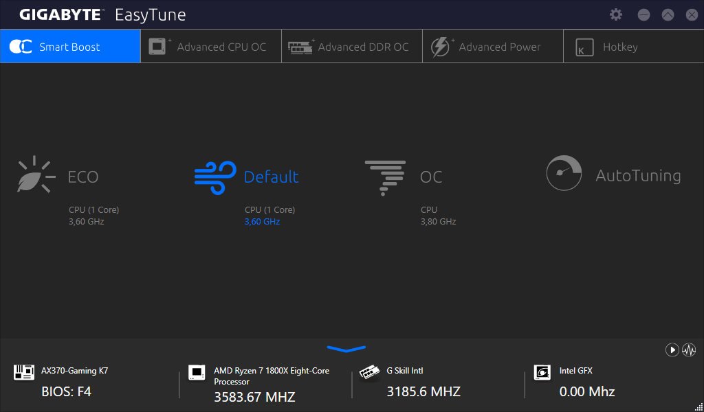 La Gigabyte AORUS X370 Gaming K7 dispone di una vasta suite software, anche se molti dei programmi installabili non verranno utilizzati da chi l’acquista. Per convenienza, abbiamo incluso alcuni screenshot dei software che sicuramente non mancheranno nel vostro sistema: