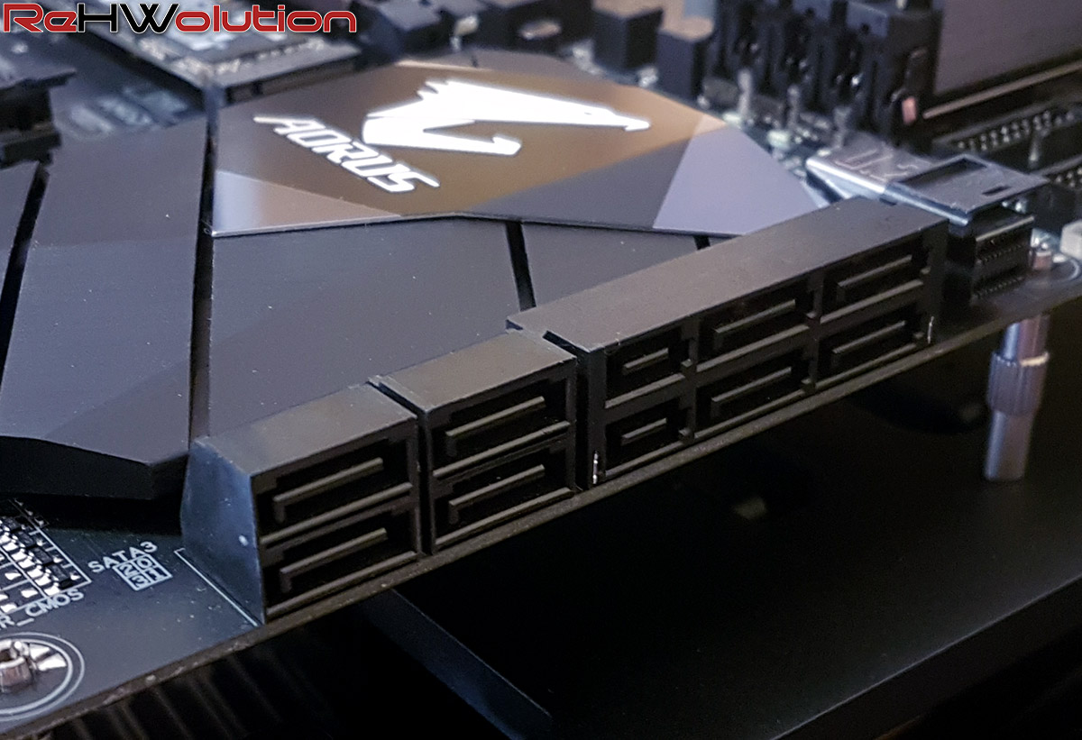 Lato storage, 8 porte SATA 3.0 e 1 porte M.2 con velocità di 32 Gbps, rendono le possibilità di installazione pressoché illimitate; la scheda inoltre presenta due header per strisce LED RGBW (di cui uno per la gestione dei dissipatori AMD Wraith Spire o Max) e due header USB 3.0.