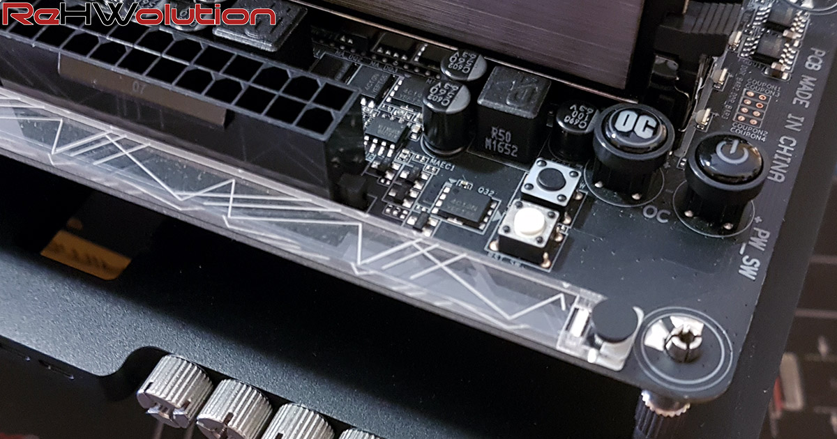 Altra particolarità, è la presenza di tasti onboard per l’avvio ed il reset del sistema, per il CMOS e per la modalità di OC automatica.
