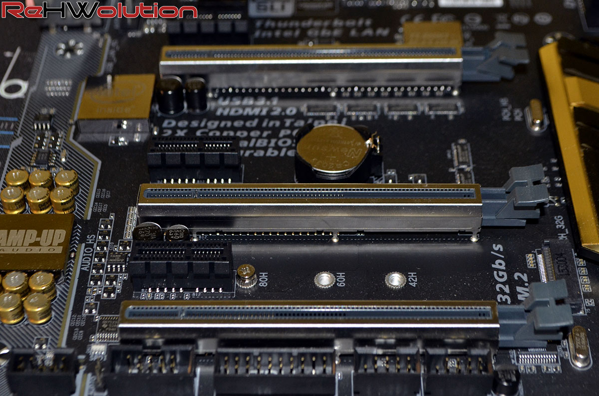 Il design, decisamente più “tranquillo” delle schede della linea Gaming G1, combina il nero a degli accent dorati che però, a differenza di altre schede con tale accostamento cromatico, non fa a cazzotti con il resto di un PC equipaggiato con hardware che non segue questo schema di colori. Il PCB nero opaco è davvero accattivante, e i dissipatori sono massicci e ben studiati per tenere le fasi d’alimentazione e il PCH sempre a temperature ridotte.Anche in questo caso ritroviamo le cosiddette “armor” sugli slot PCI-E, e ancora una volta pensiamo siamo semplici esercizi stilistici, tornando utili solo agli utenti che assemblano un PC per la prima volta e agli “sbadati”.