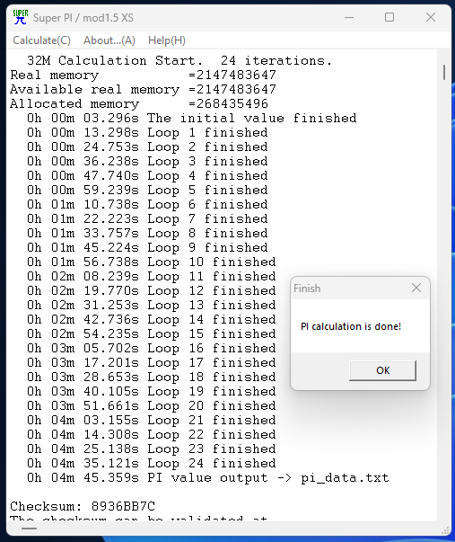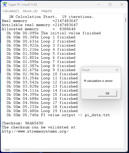 Un metodo tradizionale per verificare le prestazioni del proprio PC è utilizzare SuperPI mod 1.5 XS: il programma si occupa di calcolare dalle 16k ai 32M di cifre dopo la virgola del π, con una scalabilità clock per clock davvero sorprendente per un programma creato nel 1995. Utilizziamo questo benchmark ancora oggi, nonostante la vetusta età, perché risulta essere un ottimo indicatore delle prestazioni del proprio processore con applicazioni legacy di tipo single-thread, e non perché ci interessa sapere quanti secondi ci mette un Core i9 o un Ryzen 9 a calcolare le cifre del π: