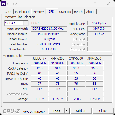 | RAM | Patriot Viper Venom DDR5-6200 32 GB (PVV532G620C40K) | Amazon |