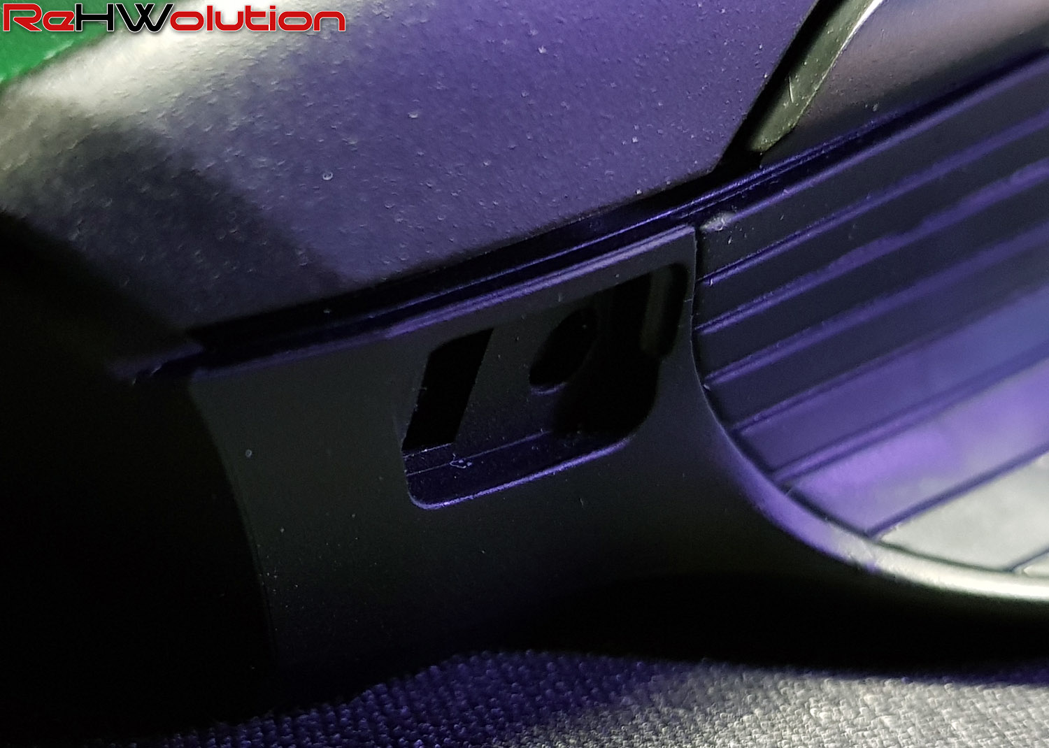 Proprio sul lato sinistro, troviamo un tasto nella parte anteriore che permette di abbassare immediatamente i DPI del mouse (ovviamente secondo un valore personalizzabile), al pari del tasto “Sniper” di molti altri mouse, con la differenza, però, che si trova in una posizione molto più comoda e naturale, che non obbliga l’utilizzatore a spostare la mani per attivarlo. In alternativa, per chi ha le mani più grandi, è presente un tasto (sostituibile) più piccolo o, all’evenienza, un vero e proprio tappo per bloccare tale tasto, qualora non sentiste la necessità di avere una funzione del genere.