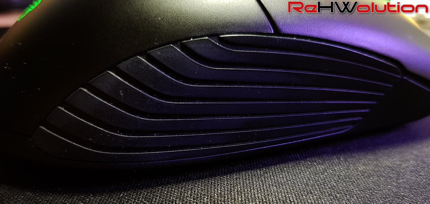 La parte sinistra permette di far incastrare alla perfezione il pollice, in modo da avere una salda presa su un mouse che, nonostante le dimensioni generose (comodissime per chi come me ha le mani grandi ed utilizza il palm grip) presenta un peso davvero leggero. Presentando poi una superficie molto curva e larga, il palm grip è la situazione ideale che questo mouse riesce a gestire.