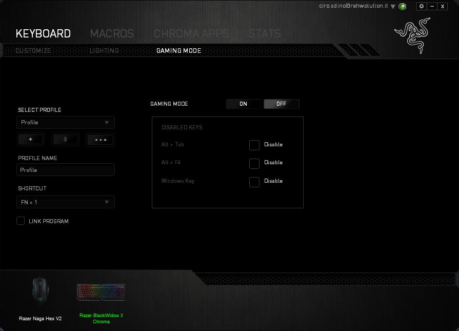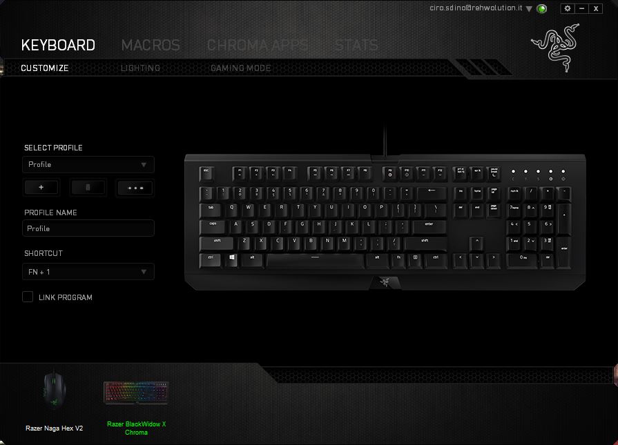 Di seguito, l’interfaccia di Razer Synapse, software di gestione delle periferiche Razer: