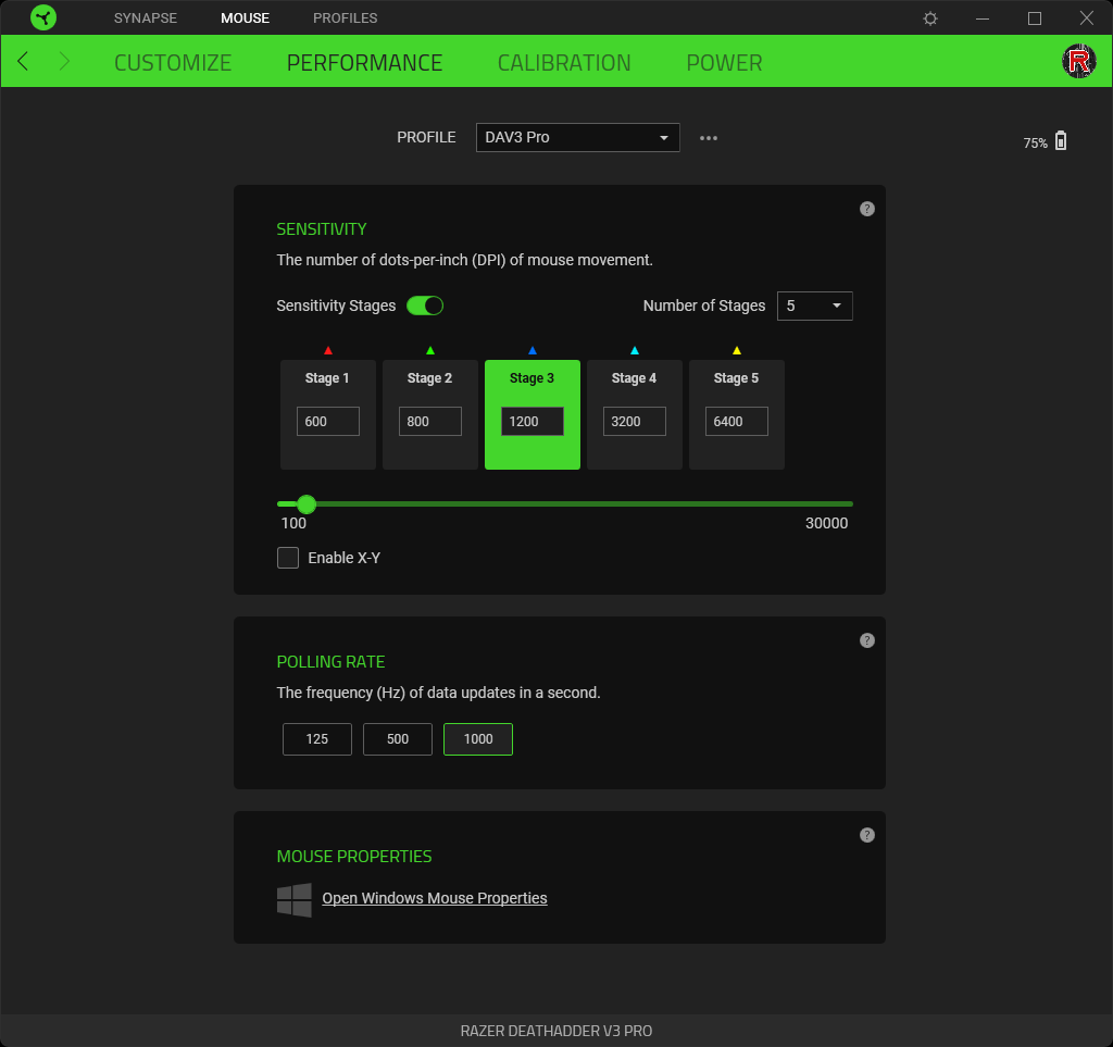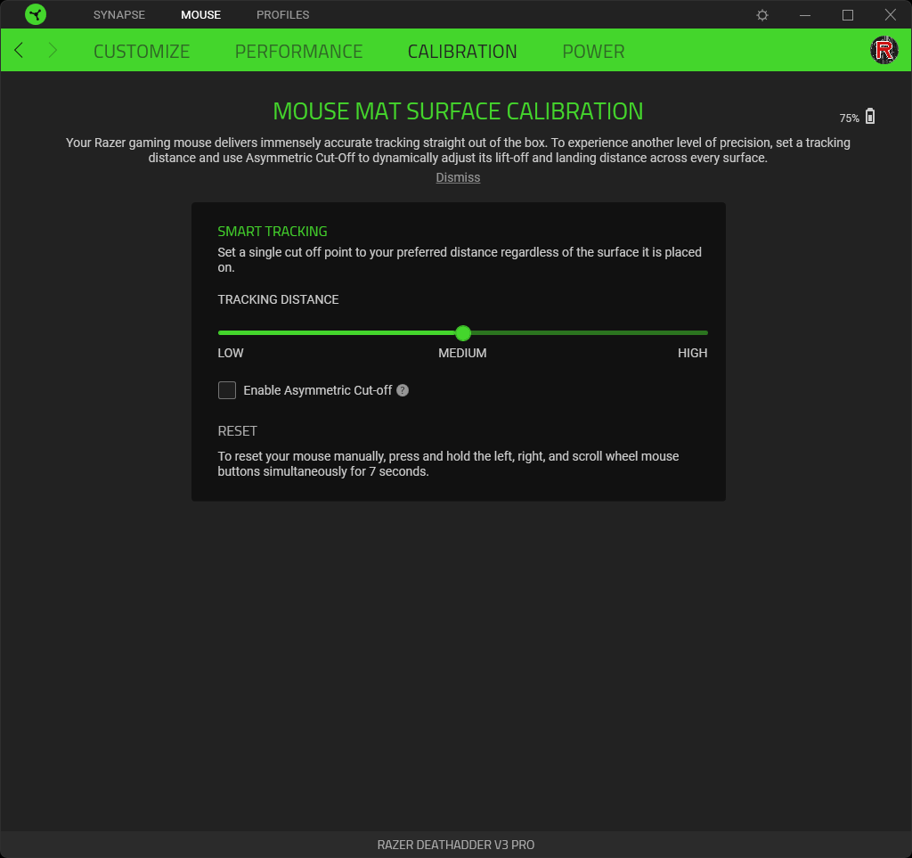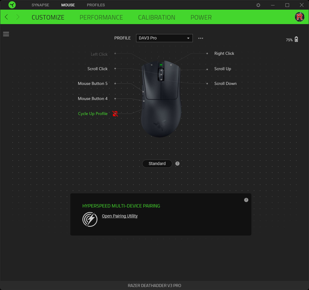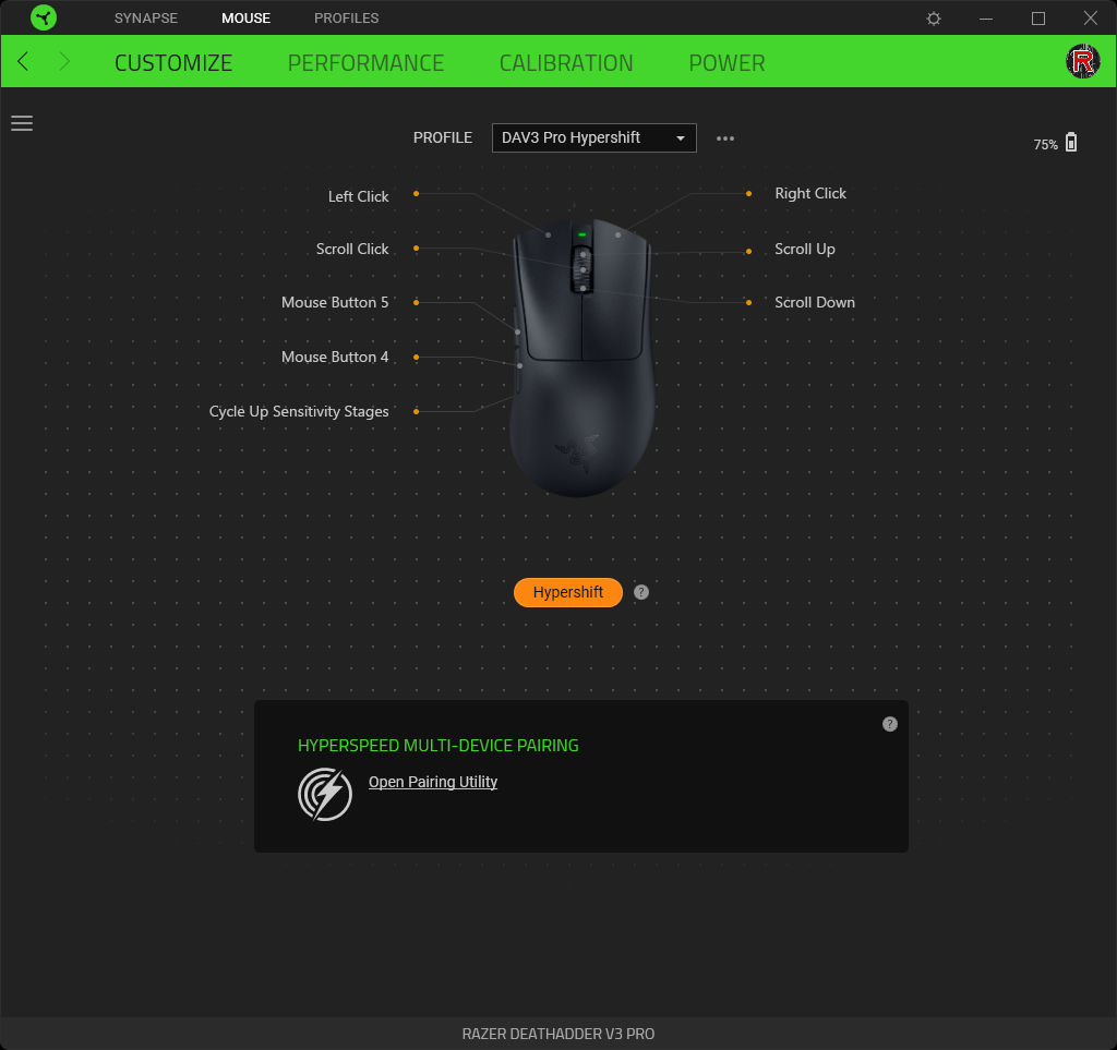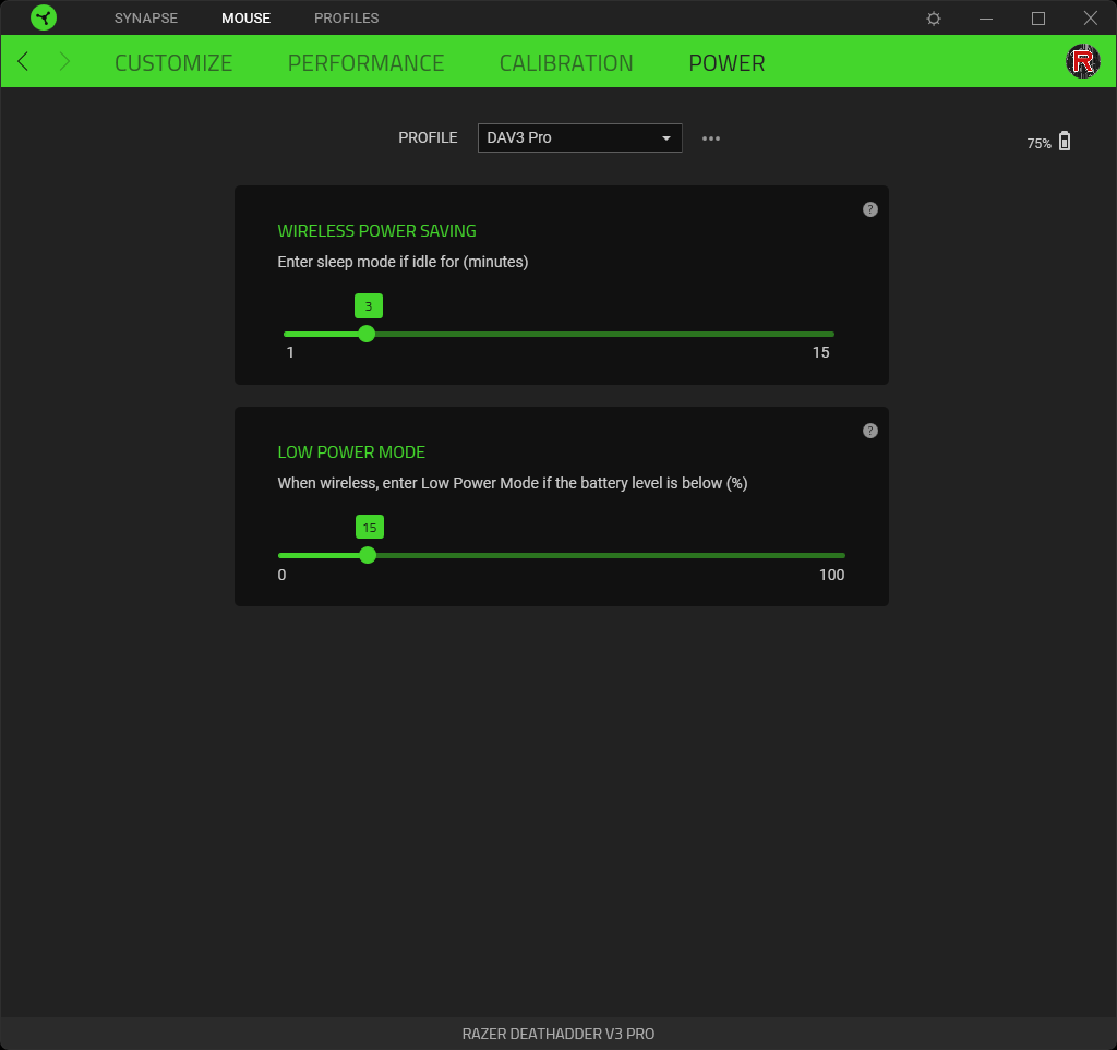 Razer Synapse non ha visto redesign negli ultimi anni, quindi si tratta sempre del “same old, same old”: interfaccia pulita, facile da navigare, con la possibilità di integrare svariati add-on, di calibrare il mouse per la superficie su cui viene utilizzato ed i parametri di risparmio energetico. Niente tab sull’illuminazione RGB, visto che il mouse non è provvisto di tale feature.
