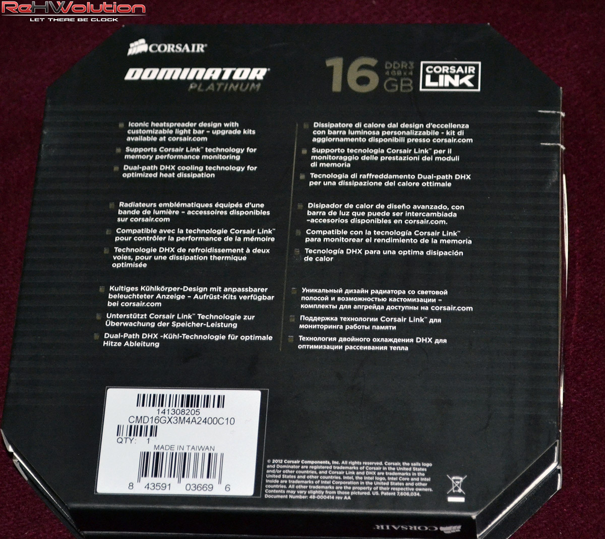 Galleria fotografica: Corsair Dominator Platinum 16 GB 2400 MHz–> Di seguito, alcune immagini delle RAM e della confezione: