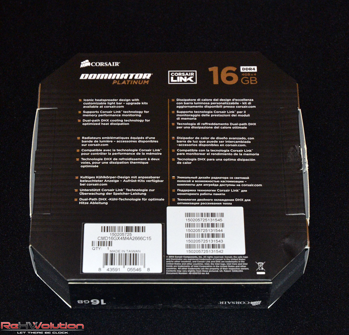 Le memorie, già dalla prima occhiata, si mostrano massicce e voluminose: i 4 banchi da 4GB e dalla frequenza di 2666MHz appartengono infatti alla lineup di punta dell’azienda, presentando un dissipatore di ingenti dimensioni ed un sistema di illuminazione personalizzabile (acquistando, da parte, le Light Bar, da noi recensite a poche settimane dall’apertura del sito), insieme al sistema Corsair Link che permette di monitorare le temperature di ogni singolo modulo tramite il software integrato.