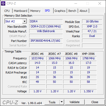 Le memorie oggi testate sono un kit formato da due moduli da 16 GB ciascuno, con una capacità totale di 32 GB, velocità effettiva di 1800 MHz (DDR4-3600), latenze C17-19-19-39 1T con una tensione operativa di 1.35 Volt.