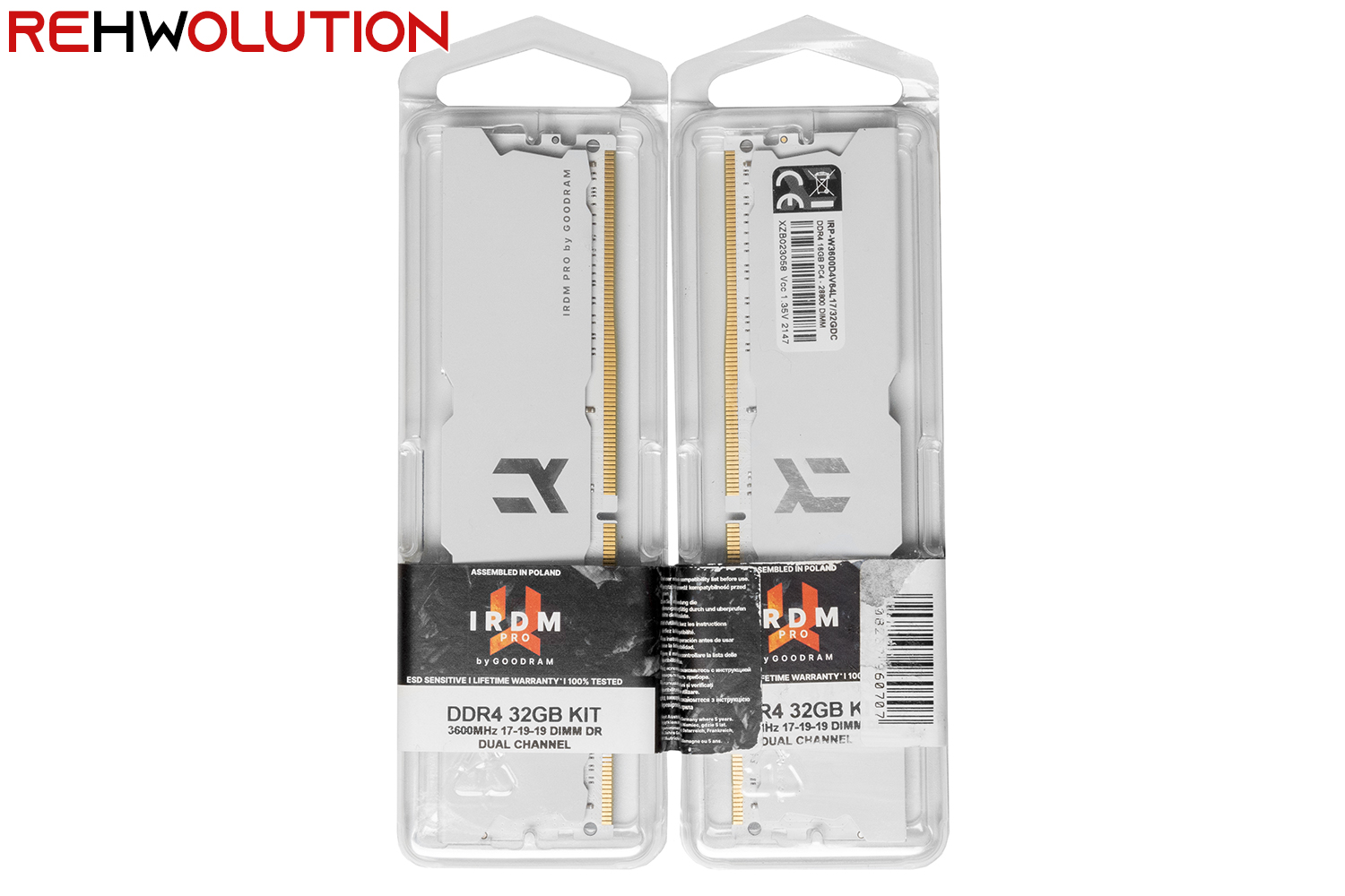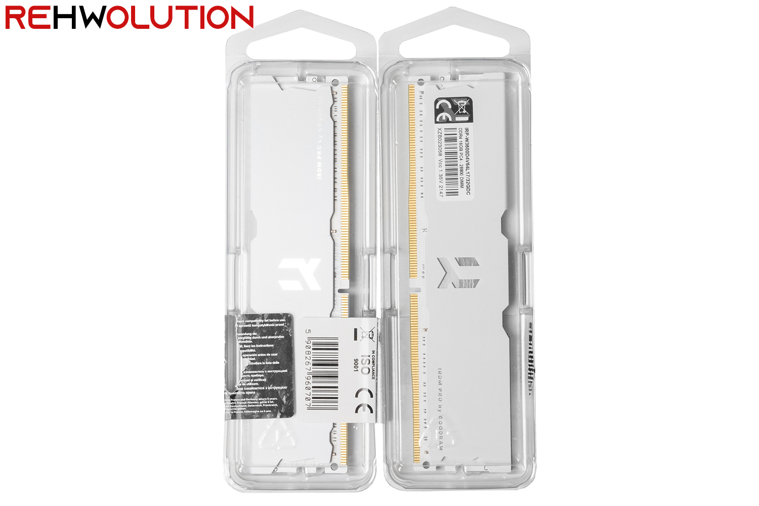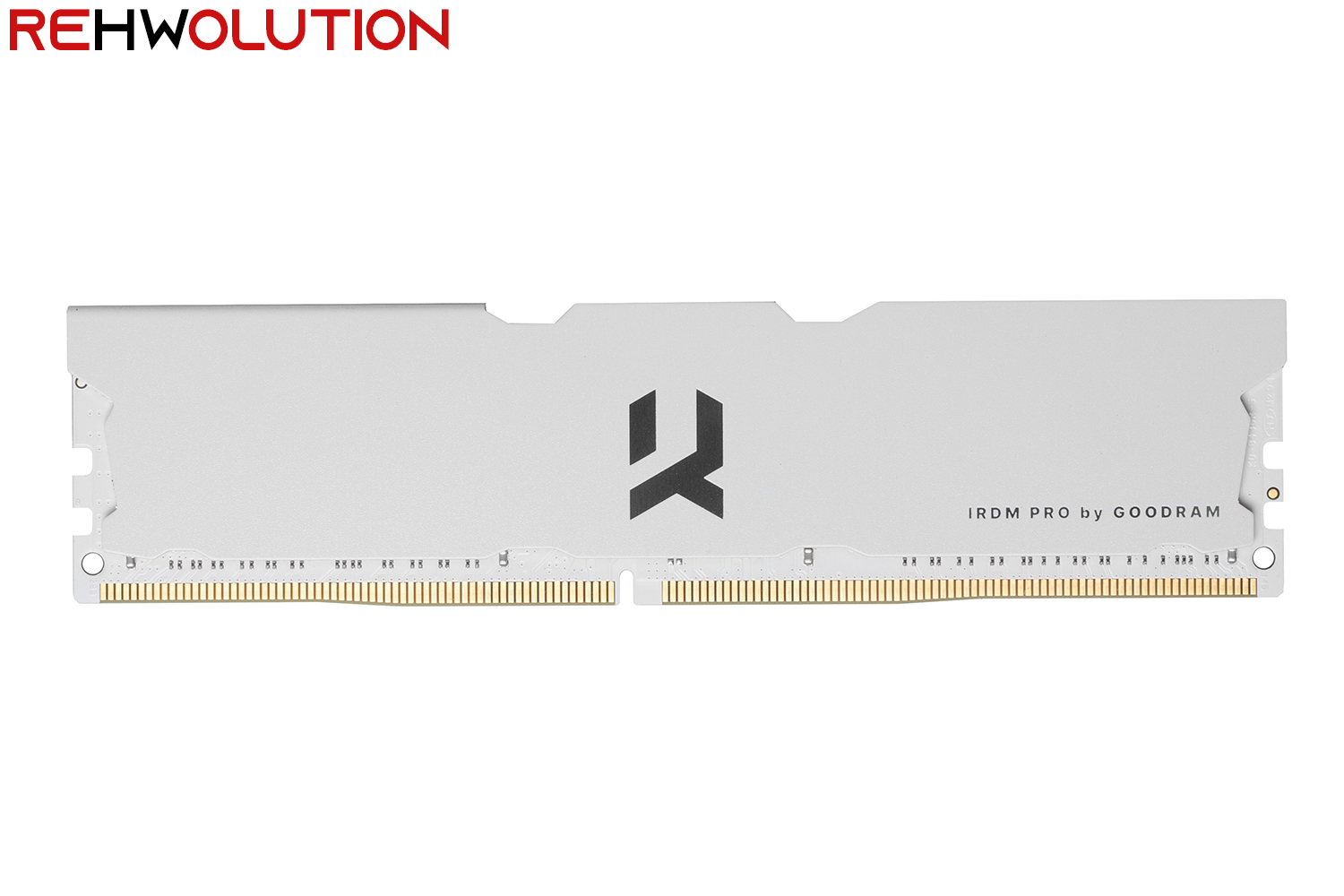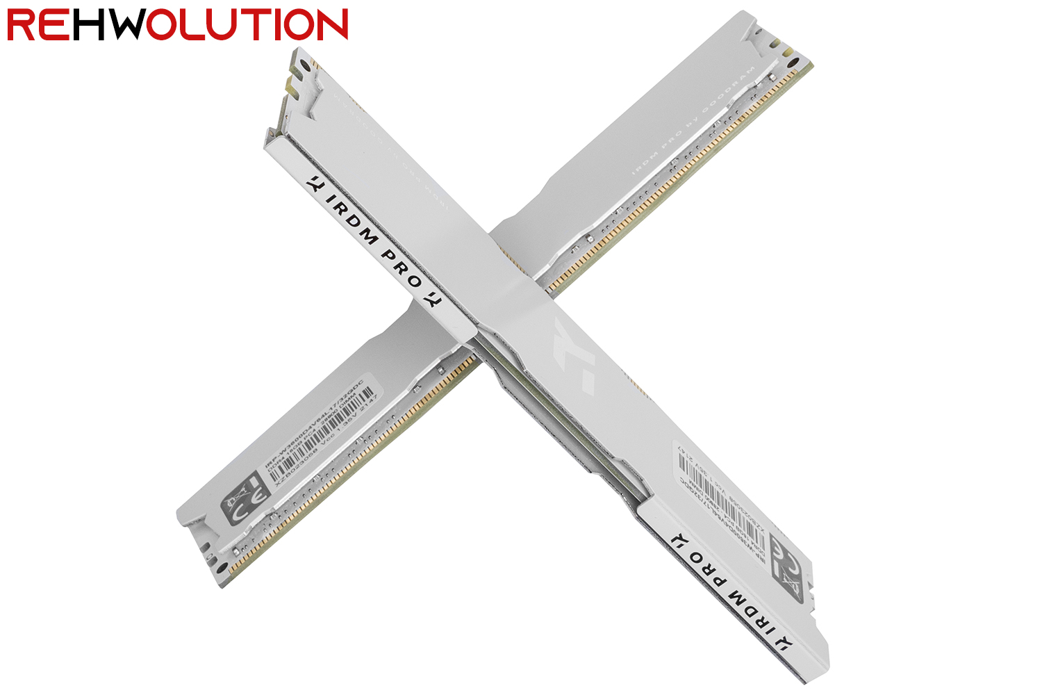Una volta estratti i moduli dai blister, possiamo ammirare l’uniforme colorazione bianca semi-lucida sui dissipatori in alluminio, con il logo IRDM al centro di essi con una finitura riflettente (difficilmente rappresentabile in foto), insieme al nome delle memorie con la stessa finitura del logo nell’angolo inferiore destro dei moduli.