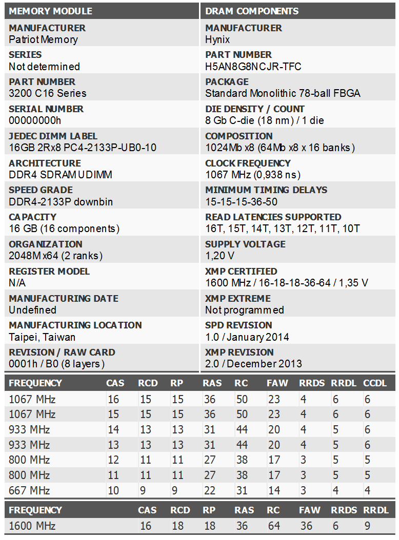 Di seguito, la tabella delle specifiche tecniche del kit di RAM, ulteriori informazioni sono consultabili in versione integrale sul sito ufficiale del produttore (Viper):