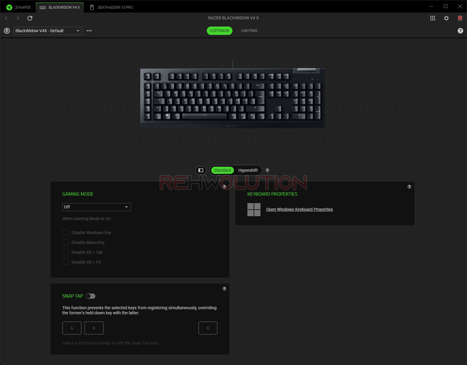 La gestione della tastiera è davvero semplice, con una tab dedicata alle funzioni dei tasti: sarà possibile, da qui, impostare il Gaming Mode (che disattiva il tasto Windows, Alt+Tab, Alt+F4 e/o il tasto menu), le proprietà generiche della tastiera nel pannello di controllo di Windows e lo Snap Tap di cui vi abbiamo parlato nella pagina delle specifiche tecniche. In un’altra tab sarà possibile invece gestire l’illuminazione RGB, con molti effetti già disponibili nel software, la possibilità di crearne di nuovi tramite il Chroma Studio e la luminosità dei LED, disattivando all’occorrenza la retroilluminazione quando il monitor si spegne o quando il PC è inutilizzato per una certa quantità di tempo.