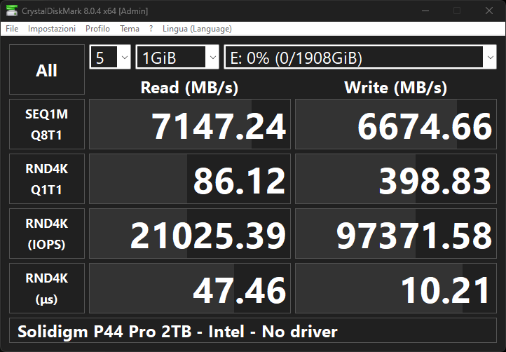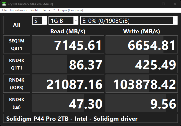 In termini di performance assolute, il Solidigm P44 Pro è forse l’SSD mediamente più veloce tra quelli finora testati.