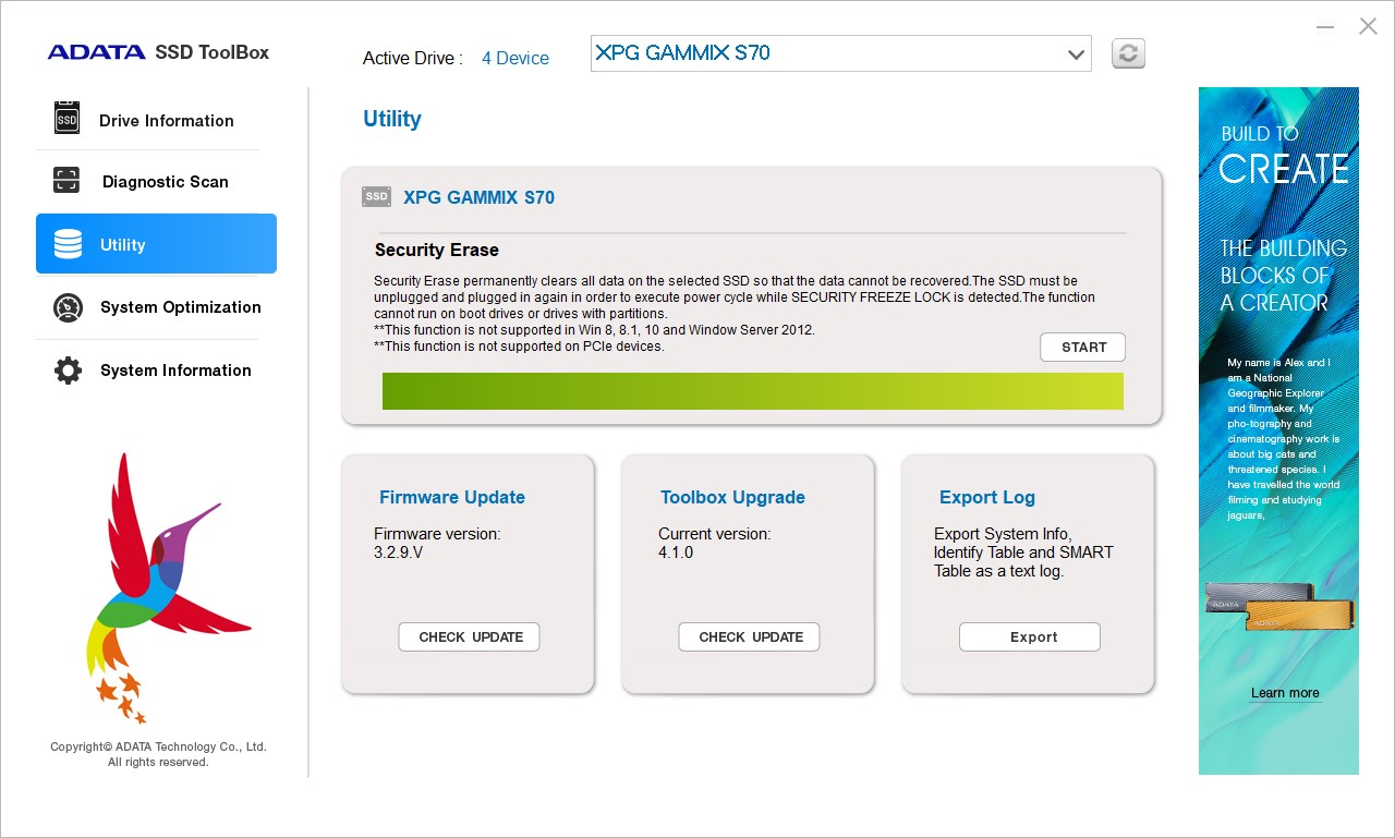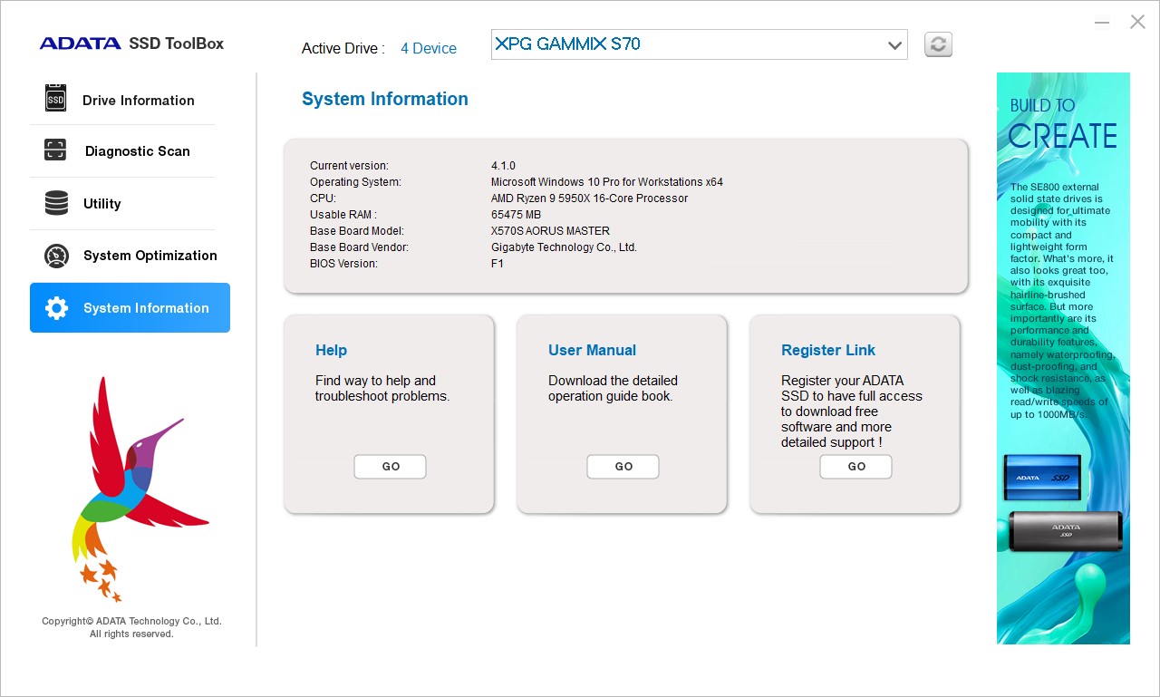 - Aggiornare il firmware degli SSD ADATA e del Toolbox e generare un log con le informazioni di sistema e S.M.A.R.T.
