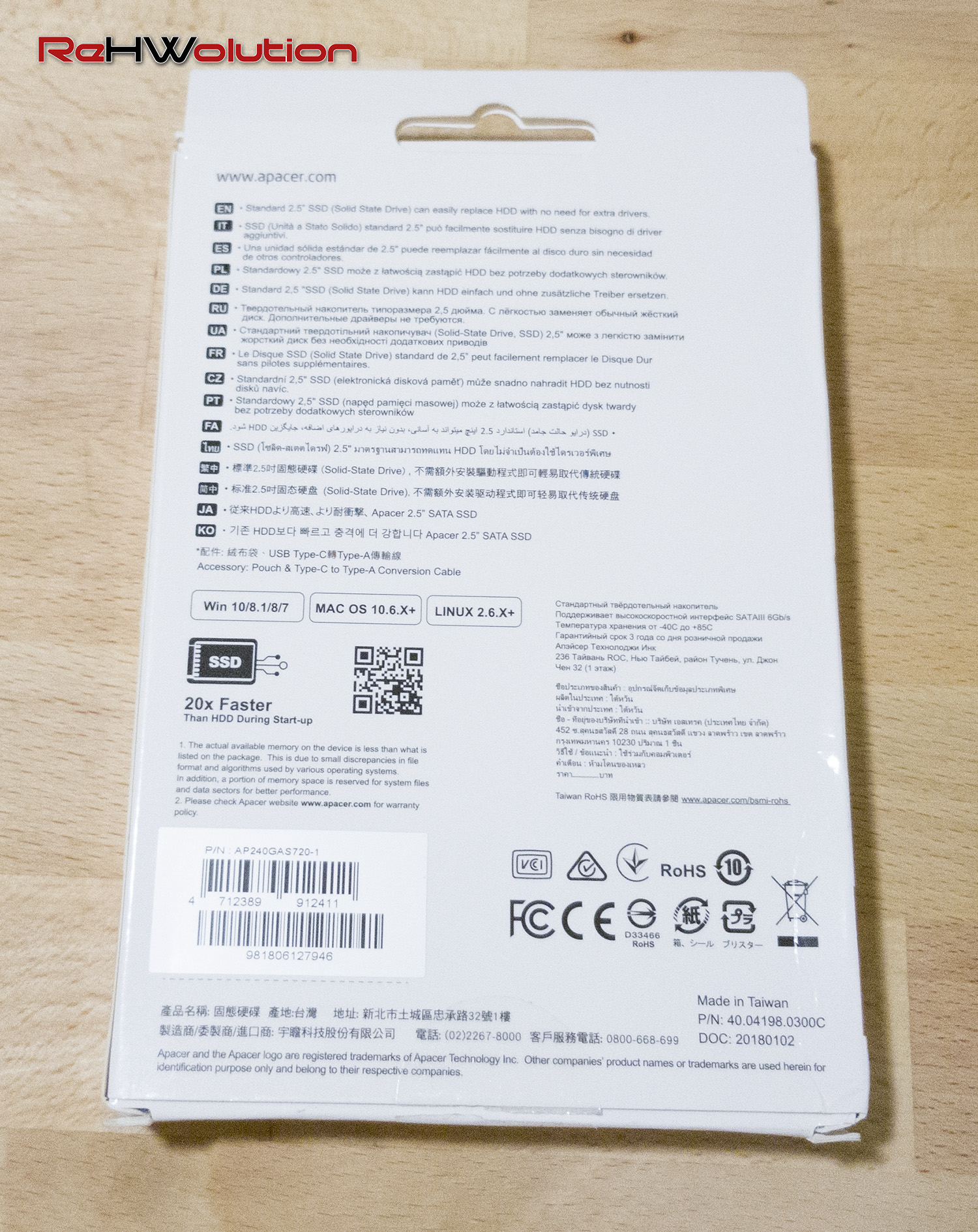 - 2. Apacer AS720 240 GB Dual Interface SSD: le specifiche tecniche