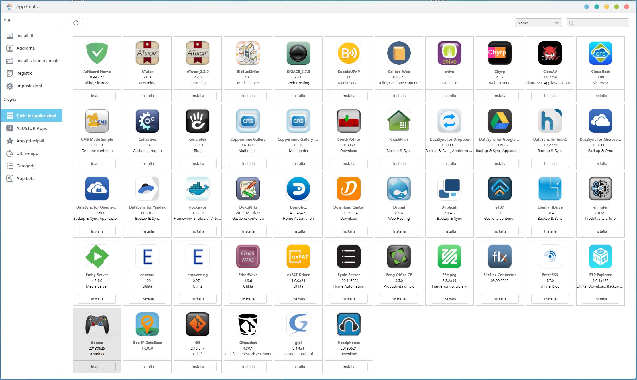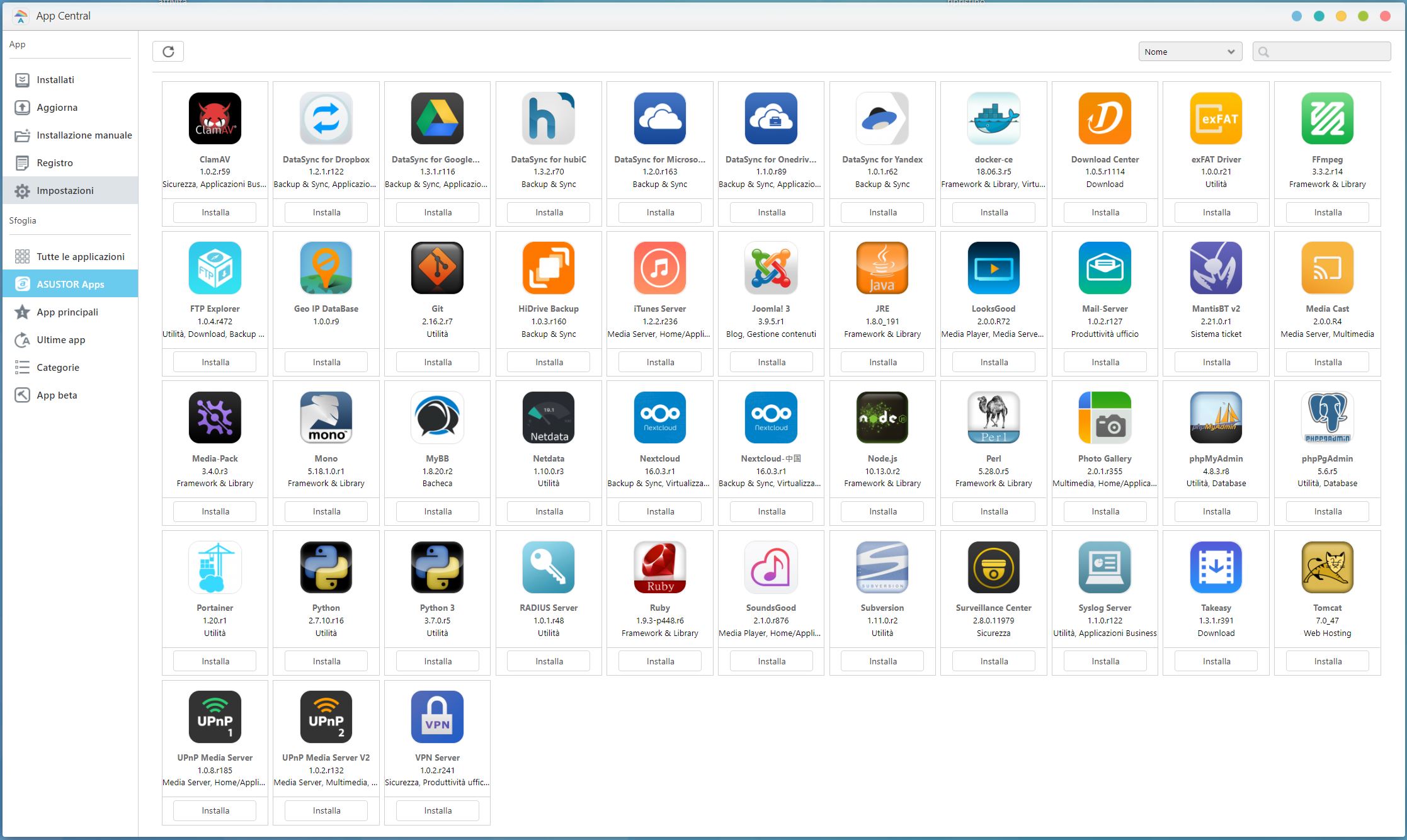 Finalmente, ci troviamo di fronte alla GUI principale di ADM, ASUSTOR Data Master, da cui è possibile gestire il NAS in tutto e per tutto ed accedere alle applicazioni installate.