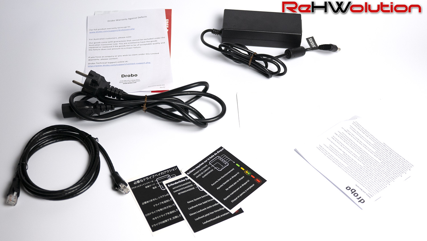 Di seguito, alcuni scatoli del NAS e del bundle in dotazione. Sfortunatamente, la confezione non era in condizioni tali da garantire buoni scatti di essa: