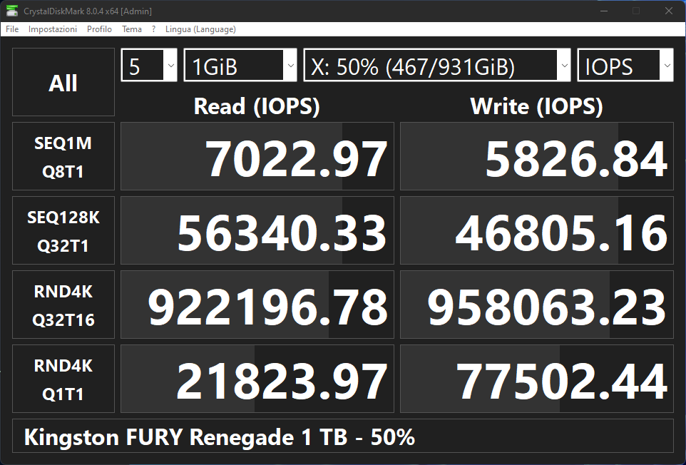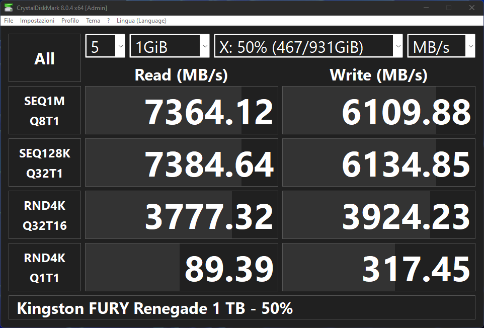 Abbiamo poi proceduto a riempire il drive al 50%, in modo da testare l’SSD in uno scenario più vicino all’utilizzo reale, e abbiamo ripetuto tutta la nostra suite di test: